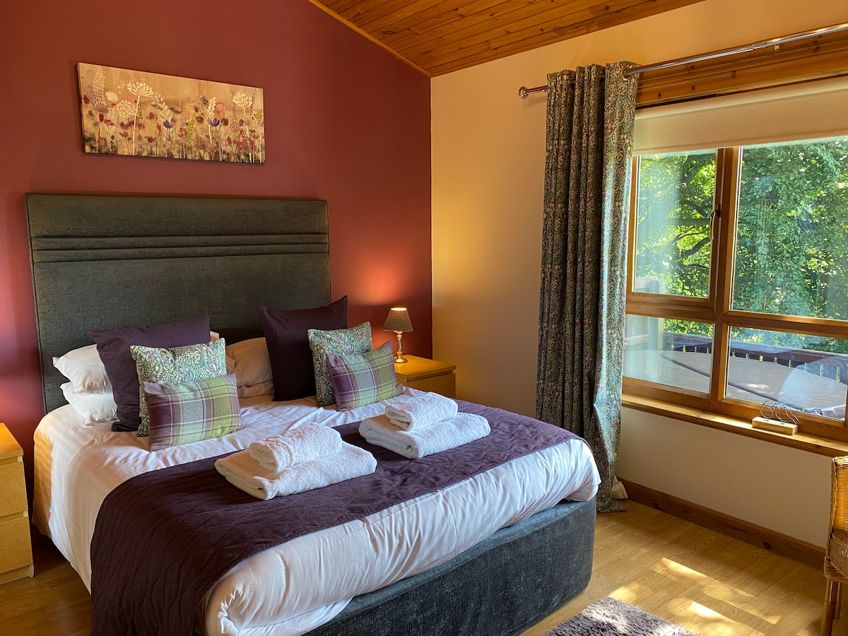 The Log Cabin is situated in 3 acres of garden, shared only with our own house. Guests are welcome to make use of the garden. The Cabin sleeps five people and we have a travel cot if required. There is one large bedroom with two kingsize and one single beds. The Cabin does not have TV or wifi, however it does have an excellent 4G signal. We welcome well behaved pets, up to a maximum of two small dogs or one large dog, even a cat. We ask guests who bring pets to vacuum before they leave.