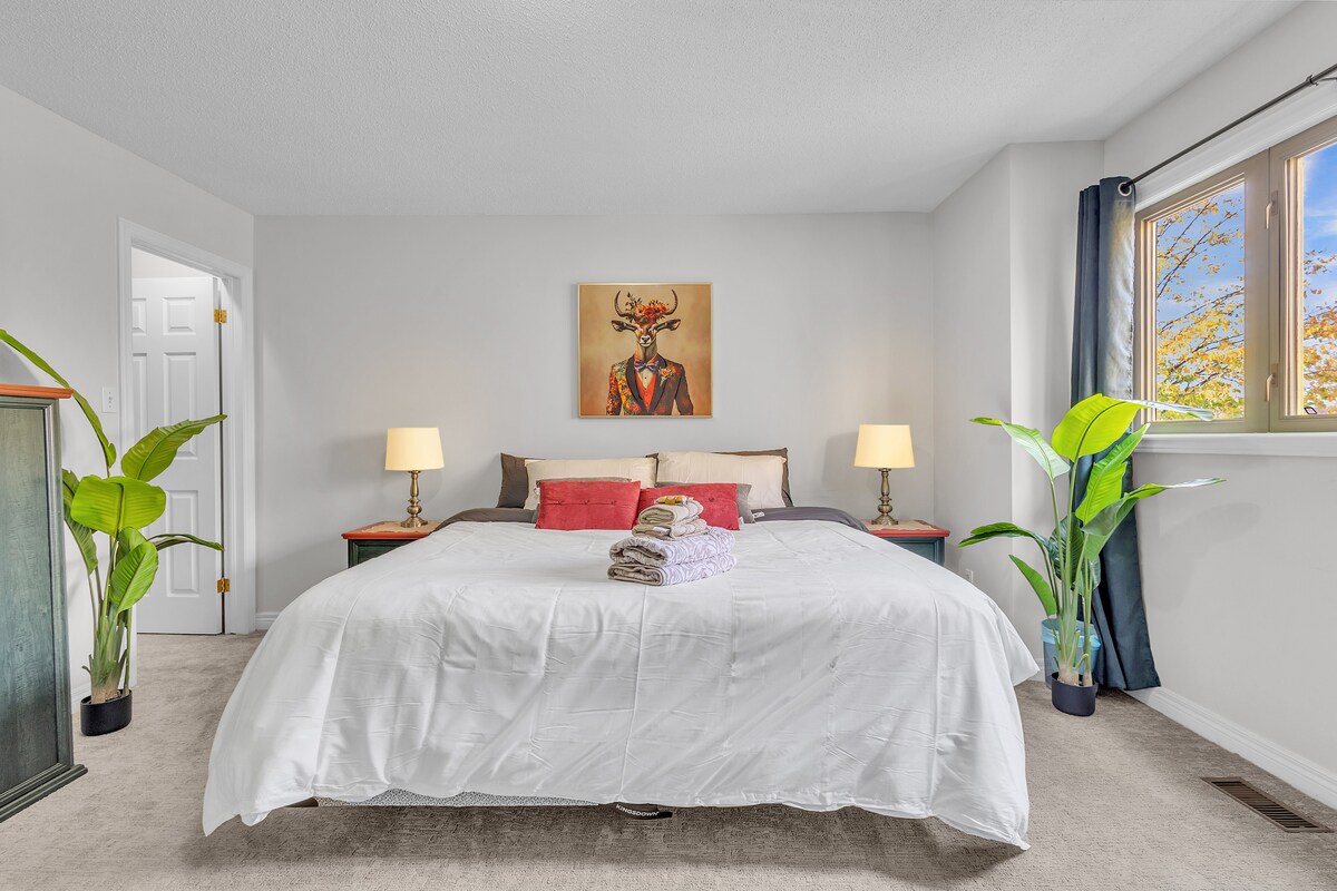The ultimate getaway! Experience ONE OF THE CLOSEST AIR BNB to the Falls, our 4 bedroom, 4 bathroom fully equipped haven just minutes away from Niagara Falls & Clifton Hill. Designed with modern comforts and quirky extras it's the perfect choice for families and groups, accommodating 10-14 guests. Enjoy the convenience of complimentary parking for up to 4 vehicles. Secure your memorable stay today and enjoy the Great Wonder of Niagara Falls at your doorstep! Enjoy the Backyard with Fire Pit!