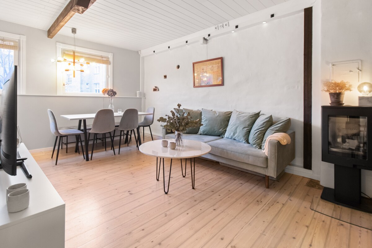 Large 2-room apartment on the 3rd floor. Very centrally located on Torshov with a short distance to everything! The apartment has a fully equipped kitchen, newly renovated bathroom and spacious living room with fireplace. Large smart TV, WiFi and good sound system. Here you will feel at home! Perfect for a couple or friends. You live centrally, spacious and comfortable. In addition, the apartment is attached to a sheltered and cozy backyard with lawn, outdoor furniture and barbecue. Welcome!