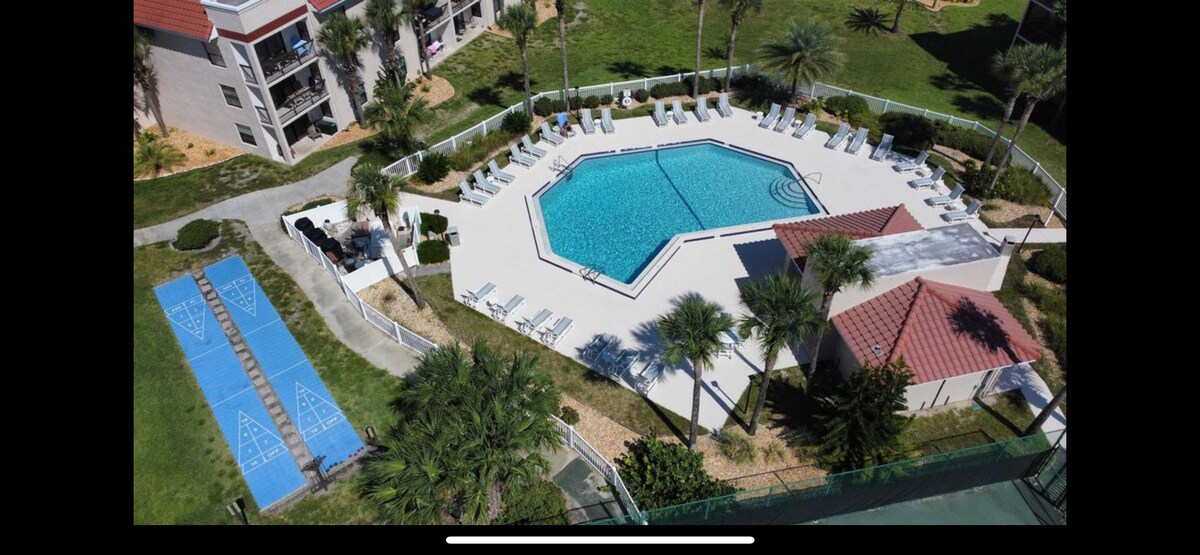 Our Top floor condo is: 1448 Sq. ft. 3 bedrooms, 2 bath with Cathedral Ceilings. Elevator access close by. Lake Views. S.E. facing balcony. Ocean view. Walk across the street to the beach, St. John's County Pier, splash park,Summer concerts, weekly Farmers market. Located within walking distance to many award winning restaurants. Just minutes away from historic downtown Saint Augustine. Heated community pool. Fitness center. Free parking No Pets allowed per HOA See: Other Details