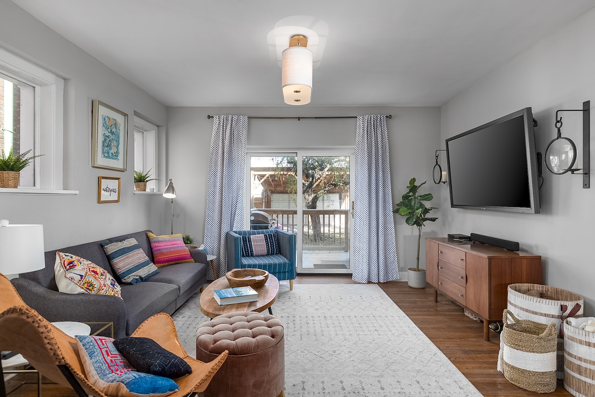 The Zen Den was conceptualized out of a desire to create a calm and peaceful oasis centrally located in the North Hampton neighborhood of St. Louis where parks, cafés, restaurants, and entertainment are only minutes away. The space features modern appliances, contrasted with soft light features and natural building materials, such as reclaimed lumber, to convey a sense of calm and tranquility. Ideal for those guests seeking to retreat at the end of a busy day exploring or remote working.