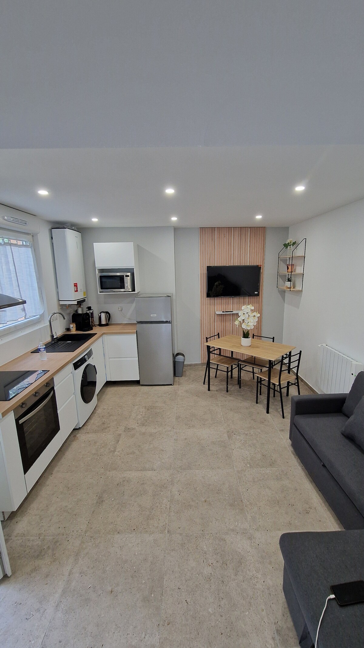 Discover this modern and refined studio, conveniently located near the Stade Geoffroy Guichard, the Zenith and the Cité du Design. With elegant decor and contemporary finishes, this home offers a perfect setting for business trips and getaways for two. Enjoy a cozy and bright atmosphere with a seating area, a sleeping area and a kitchen equipped to meet all your needs.