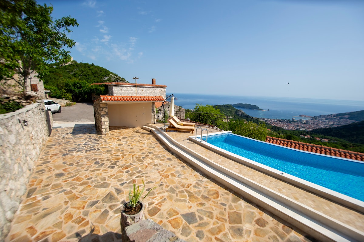 Villa Marija is located in the village of Lapcici, an 8-minute (8km) drive from Budva, with beautiful views of the old town of Budva. Within the house has a heated swimming pool, sauna, free parking, free internet, basketball court, terraces, garden, barbecue and bar that offers a wide selection of refreshing beverages. Lapcici and our villa is an excellent choice if you like to enjoy the beautiful sunsets and nature lover you like peace and quiet.