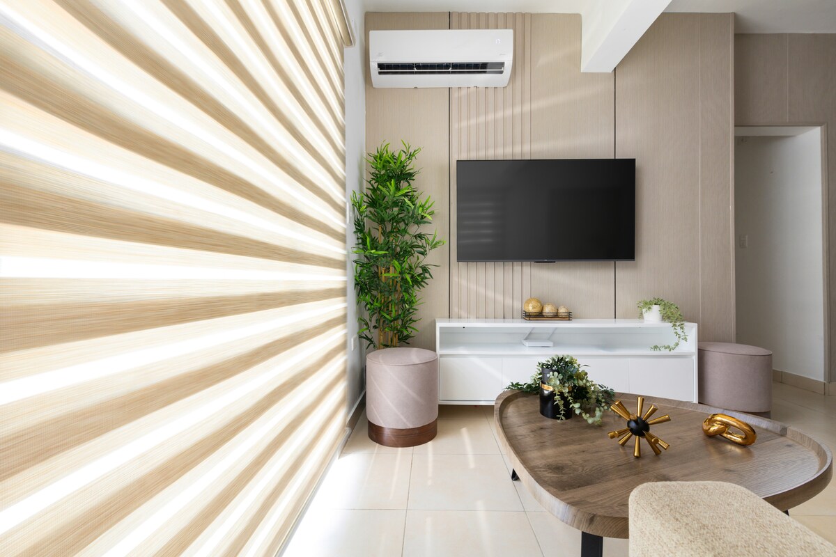 This accommodation combines modern and minimalist design with a focus on comfort. Each space has been carefully thought out to offer a cozy and functional experience, perfect for both short and long stays. Enjoy all-new amenities including air conditioning, TV, fast internet, and self-check-in. Strategically located, near the center and away from noise, in a closed and safe residential area with exclusive sports areas. Your ideal refuge awaits you!