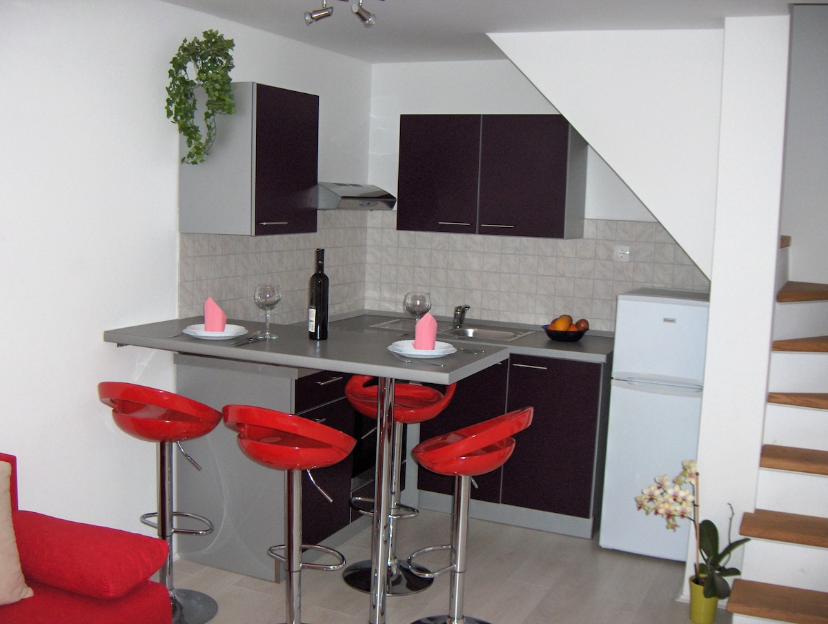 Welcome to our cozy one bedroom penthouse flat on the island of Brač boasting 65 sqm space and a balcony. Our family house is a traditional Dalmatian stone house built only 6 m from the sea on the property of 1500 sqm hidden in the shadow of 50 year old Mediterranean trees. Those who want to spend their vacation in the quiet place next to the sea should come to us – to our little village of Bobovišća na Moru on the southwest side of the island.