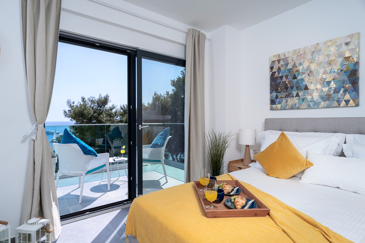 Apartman površine 60 m 2 sastoji se od spavaće sobe sa velikim bračnim krevetom, kupaone, prostrane dnevne sobe sa kuhinjom, predsoblja i balkona. Čitav južni zid prema moru je u staklu tako da prostor ima puno svjetla i sa balkonom čini jedan prostor. Apartman se nalazi na trećem katu kuće koja se nalazi u neposrednoj blizini centra grada (5 minuta ugodne šetnje uz more) te sa balkona ima otvoreni pogled na more i otoke budući se kuća nalazi u prvom redu uz more.