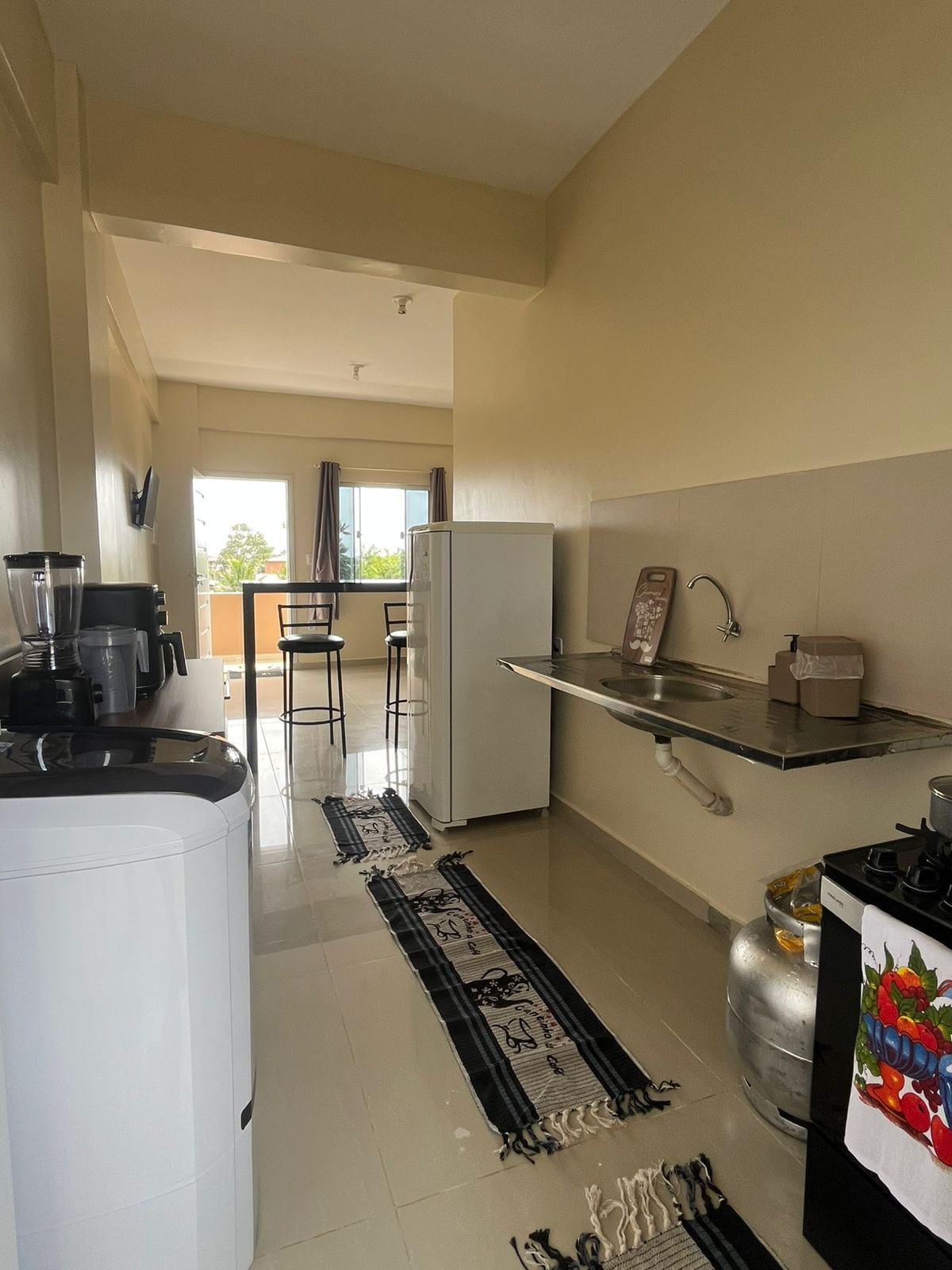 Newly renovated, great location and safe. 1st floor. Family building, clean and organized. LGBT Friendly Hosts Bedroom 1: Double bed, open closet, air-conditioning, hammock hanger and study desk, Smart TV Living room/kitchen, dining table, ceiling fan, refrigerator, water tank, clothesline, washing machine (small tank), cooktop, various dishes and utensils. Bathroom with electric shower, shower, toiletries and towels