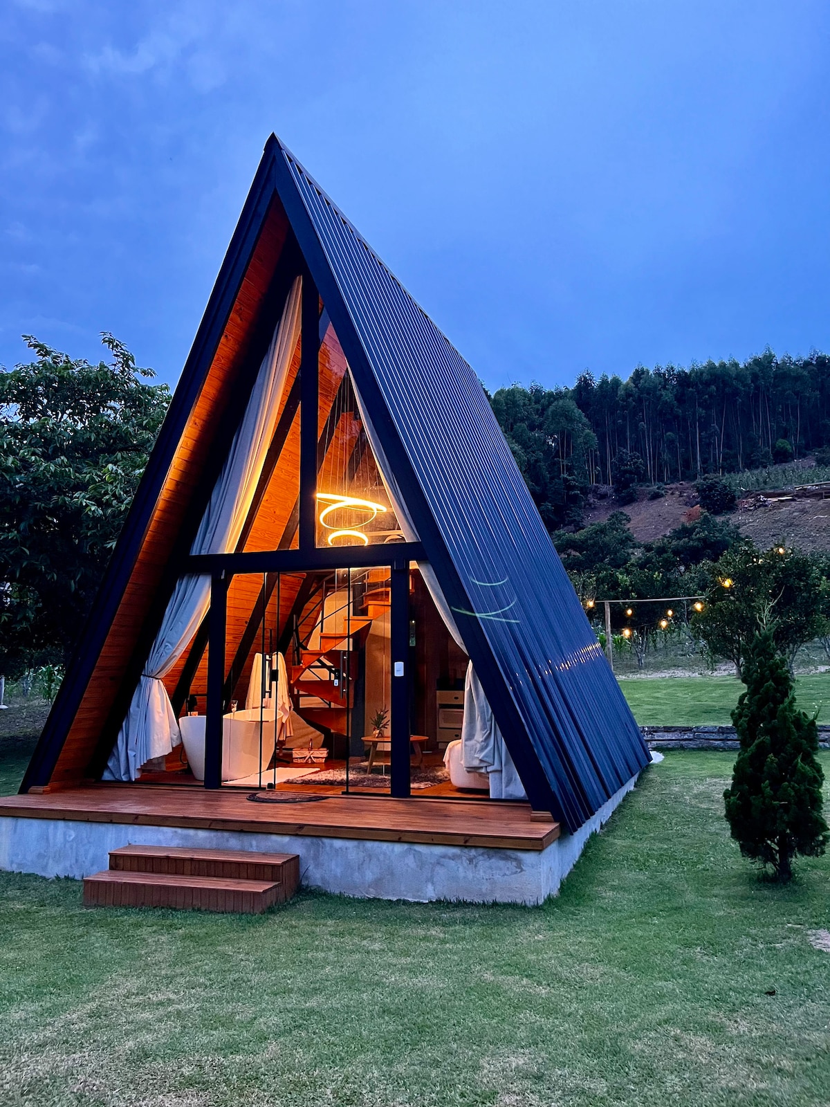Get to know the 1. ÉS glass house, located in Villaggio Forestale, Santa Teresa/ES - on the Flower Circuit - Vale de Benção/ES. The cabin has glass walls and ceiling, and is located in the middle of the Atlantic Forest, surrounded by the stars, fauna and local flora! In it you will be able to disconnect and reconnect if nature, which allows for a unique experience for nature lovers who stay.