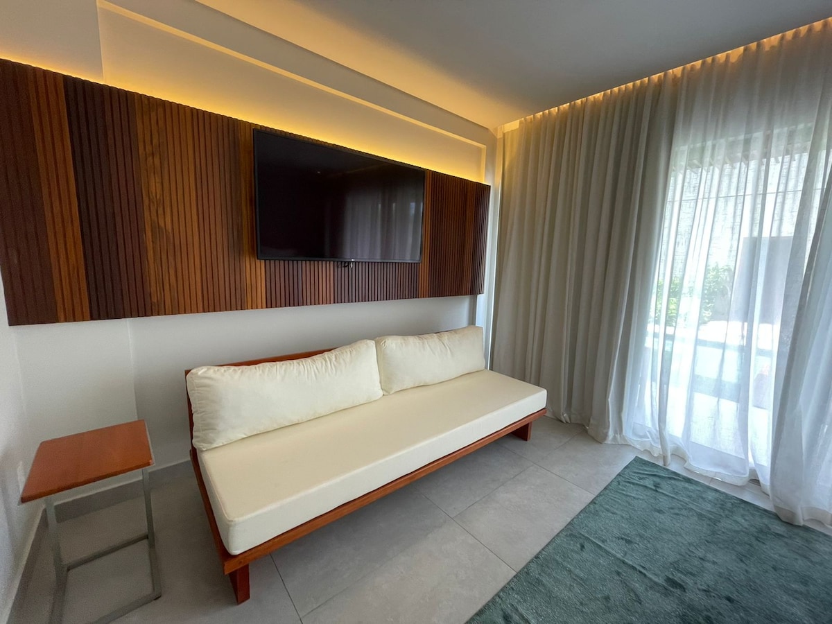 Our first beachfront accommodation on one of the most beautiful beaches in Brazil. A mix of refinement and comfort, our space was designed to meet the most attentive eyes. Located in a leisure complex, our accommodation has a swimming pool garden and shared areas with free access such as a playroom, sauna, cinema, game room, children's water park and restaurant, as well as some third-party spaces (SPA, Beauty and Convenience room). Breakfast NOT included in the daily rate.
