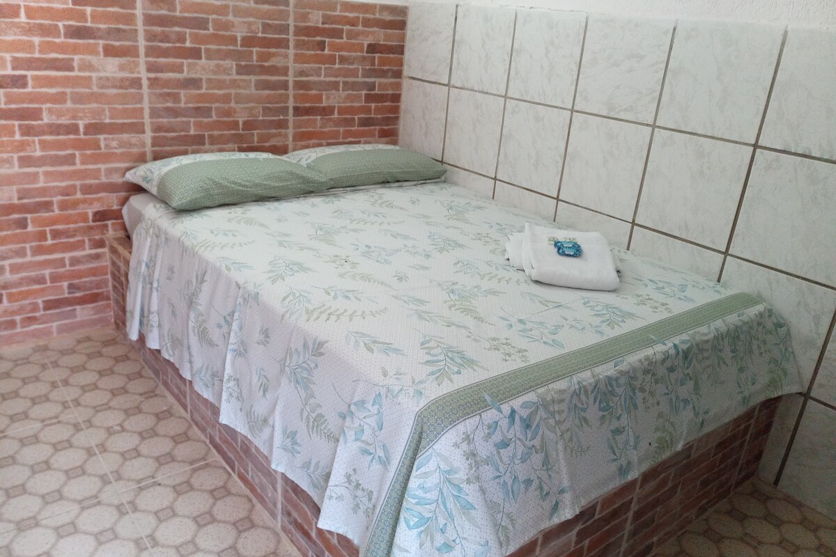 pousada( hotel) com uma cama de casal para até2 pessoas recepção 24 horas estamos a 250 metros da praia. temos wifi. pousada familiar mineira. o trem bom
