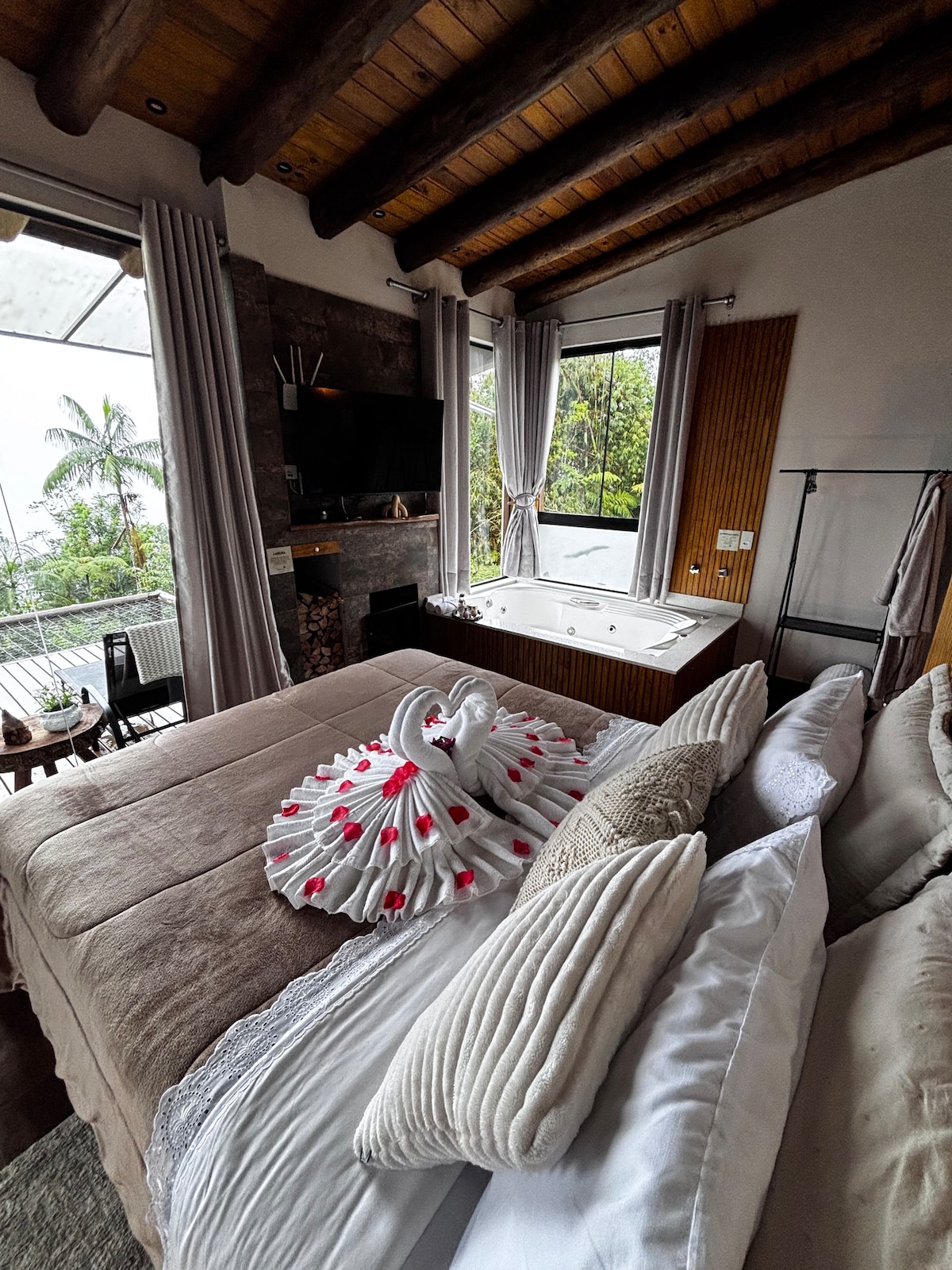 Chalé Romântico com Hidro, Vista, Piscina e Lagoa