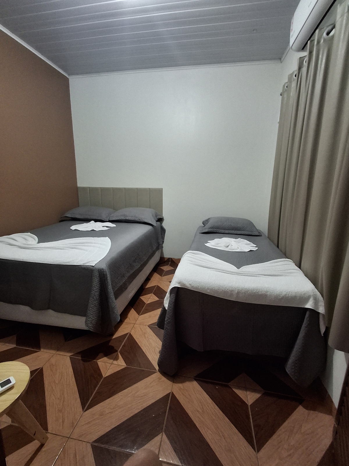 Quiet Accommodation for 2 People Welcome to this charming and comfortable accommodation, ideal for couples or individual travelers seeking peace and comfort! Located in a quiet environment, this house offers everything you need for a pleasant stay. Spaces Bedroom: A cozy bedroom with a double bed, air conditioning, bedside table with lamp and modern decor. Ideal for a good rest. Close to the Convention Center