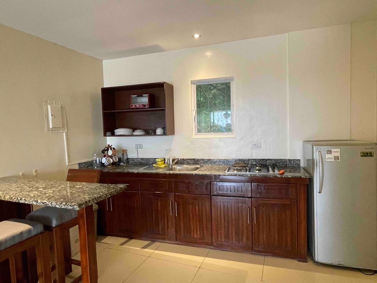 High Ceiling Studio Apartment in Station 3 w/ partial SEAVIEW! Unit Highlights → Cozy Apartment w/ partial seaview. → with Kitchen & Dining → Perfect for Family → ★ ★ ★ ★ ★ 5Star Rating! → Less than 30 secs walk to the famous white beach. Location → Part of BEACHFRONT apartment complex in Station 3 → This is the best location to experience the "old Boracay," away from the tourist crowd in a quieter and more pristine setting. → The neighborhood is preferred by many Westerners to stay long term.