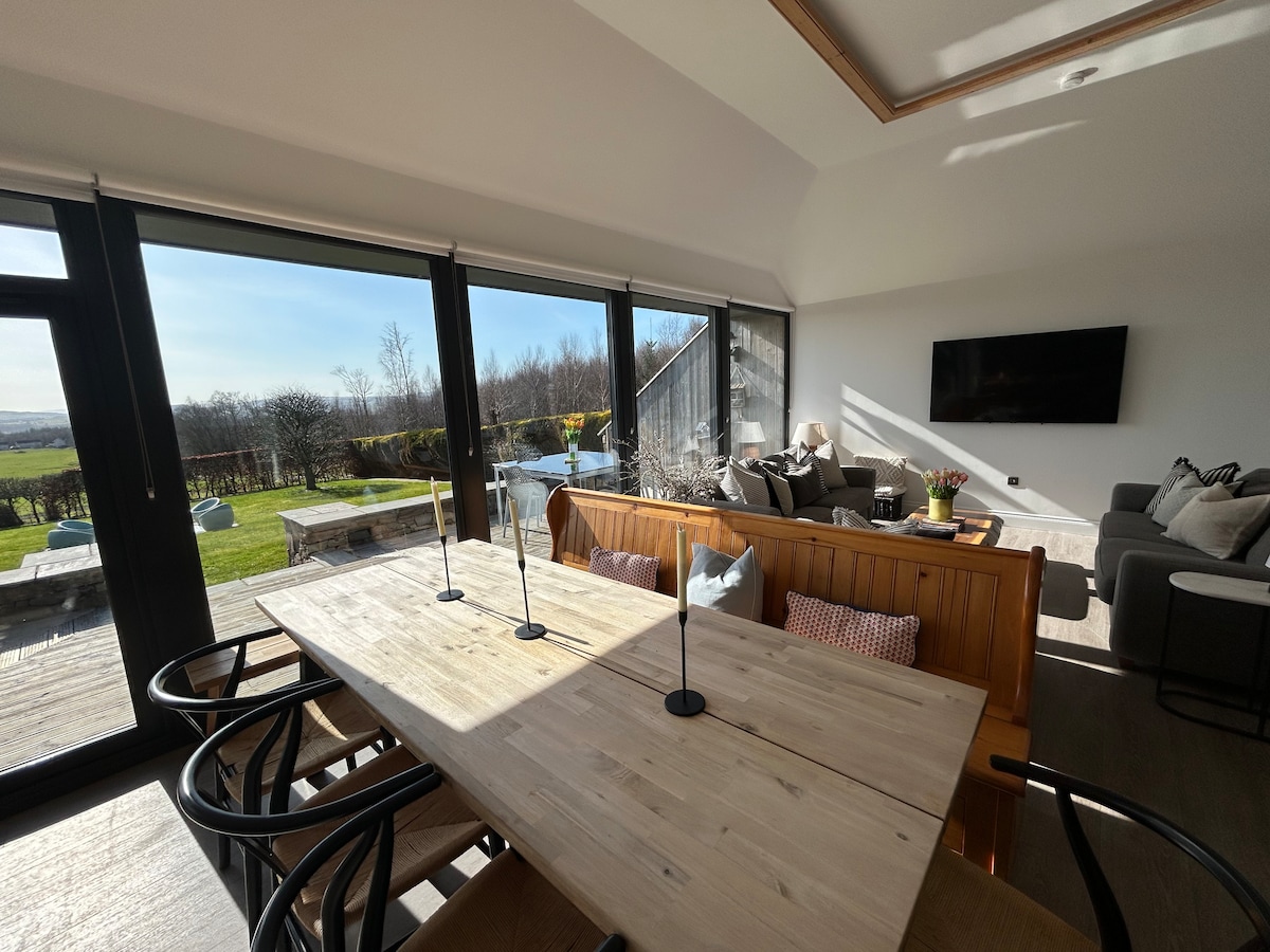 Modern barn surrounded by views of the Devon countryside, the perfect place for friends and family to holiday. Situated in the picturesque Village of Dunsford on the edge of Dartmoor only 20 minutes from the Cathedral City of Exeter and 30 mins to the south coast Free WIFI Inside is a well equipped living area leading onto the patio where you can enjoy alfresco dining. 5 large ensuite bedrooms . Wheelchair accessible Secluded garden Ample parking untethered EV charger using Co Charger App