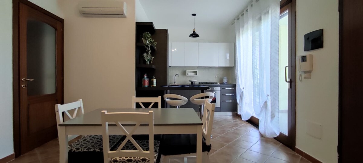 New apartment with private porch and a splendid view of the garden. A double bedroom with wardrobe, main bathroom with double shower, large living area with kitchenette. Design furnishings with a few touches of Sardinian furniture and craftsmanship. The residence is surrounded by greenery just 10 minutes from the city center, close to the main services and beaches, but at the same time away from traffic and noise.