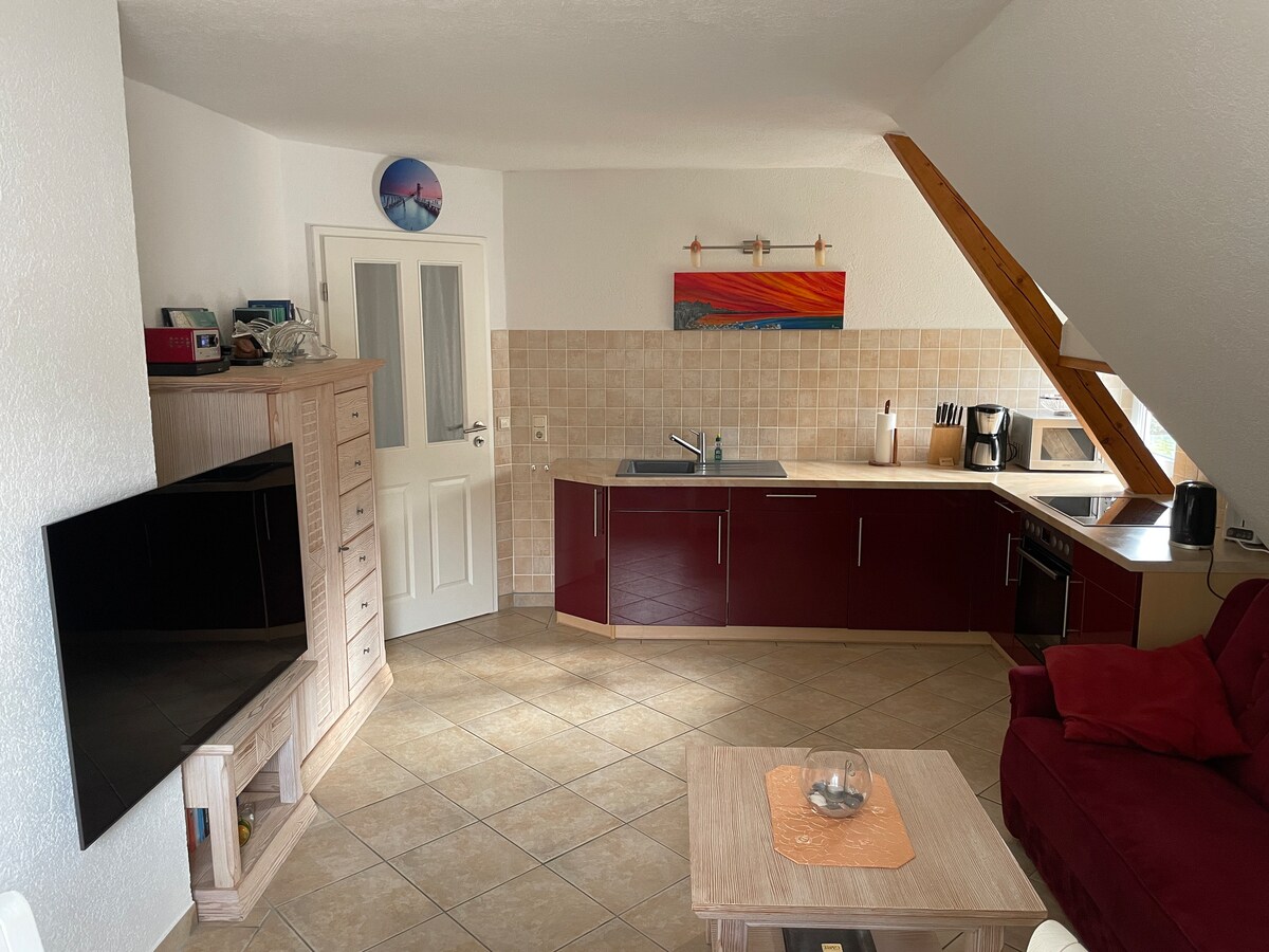 Welcome to the old museum courtyard in Steffenshagen! This half-timbered apartment can accommodate up to 5 people. It has a kitchen, a small bedroom with a double bed (1.50 m), another bedroom in the attic, a living room and a bathroom. Outside the courtyard you will find a terrace with a grill and seating.