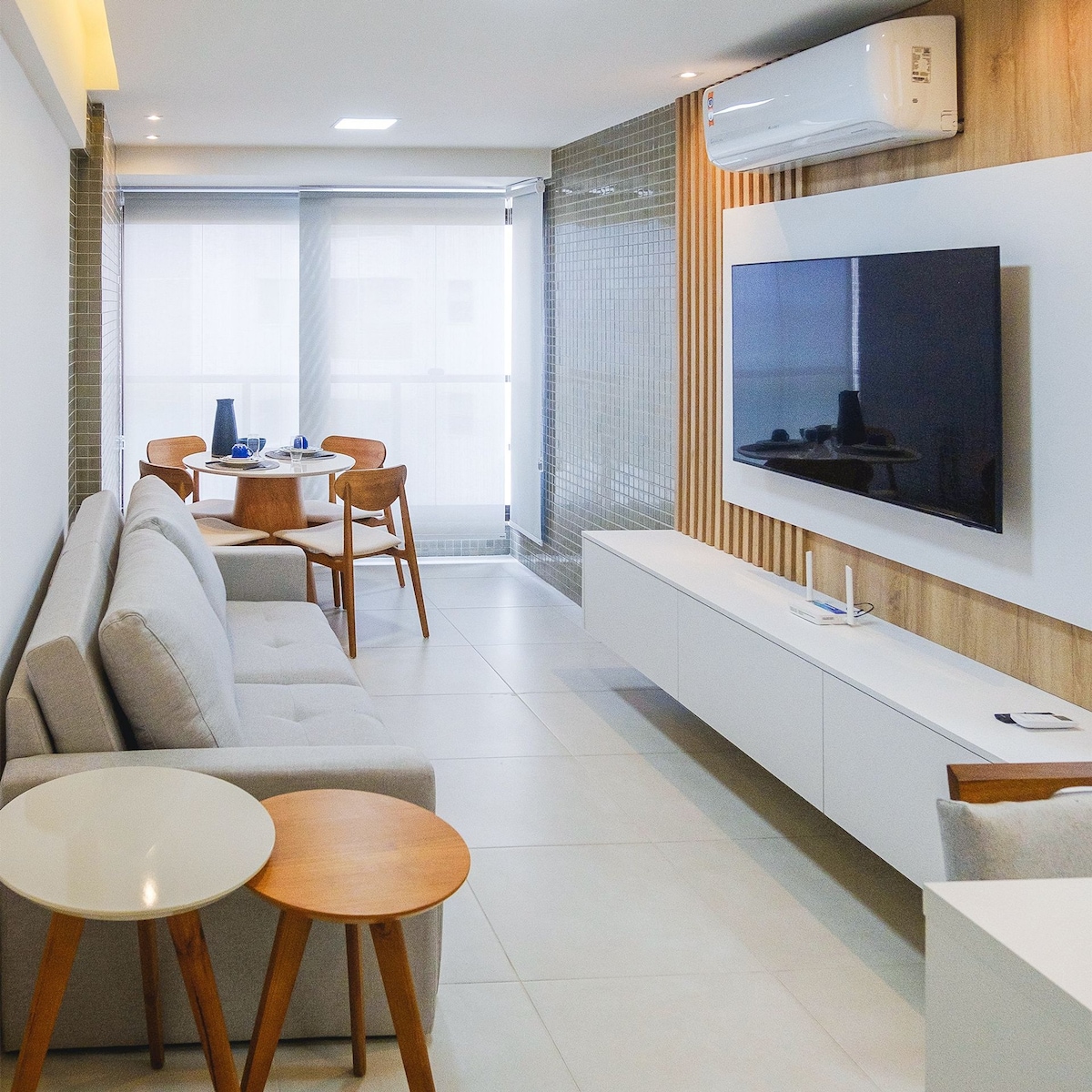 Located on a postcard of the city, with a spectacular view of Barra beach, the space was carefully chosen and designed to provide guests with a unique experience. The apartment features air-conditioning in all rooms, 4k Smart TVs, high-speed Wi-Fi internet, a beer maker and a washer-dryer. The environments are integrated with the balcony, allowing a permanent view of the sea from any of the rooms.