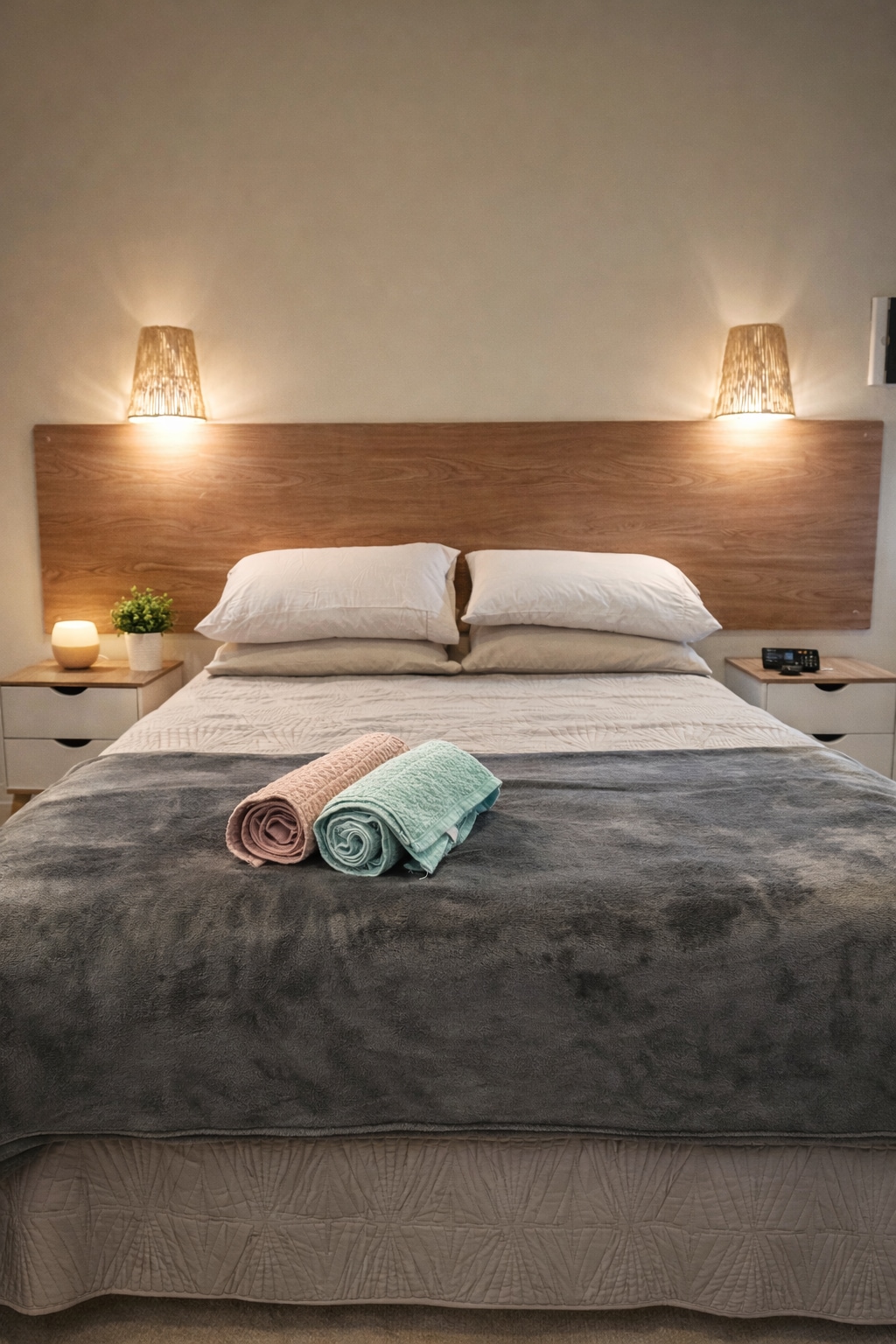 The house is an apartment (bedroom and living room) within a Village, consisting of a bedroom with air-conditioning, bed (Queen), living room (sofa bed), kitchenette, bathroom, balcony, and an uncovered parking space. All cabinets/furniture are custom-made. Guests will have all household and kitchen utensils at their disposal (TV, Refrigerator, Stove, Washing Machine, Microwave, Sandwich Maker, Sugar, Water Filter, Blender, pantry table, glasses, plates, cutlery, trays, pots, etc.).