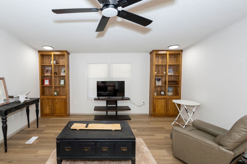Waurika Lake - Relax and enjoy this peaceful location, only a short walk to the lakefront. This home comes with two bedrooms, two baths and will accommodate 8 guests comfortably with the added pull-out sofa bed. Added features also include a 75” flat screen TV in the living room with flat screen TVs in both bedrooms as well. The back covered patio is over 1,000 sq. ft. with a large area for outdoor dining, grilling, or relaxing and watching the deer from the back porch or around the fire pit.