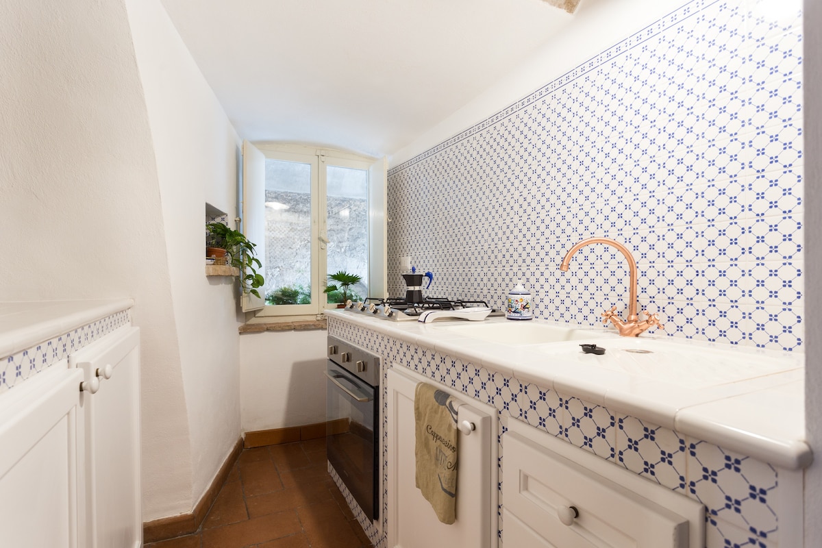 Studio apartment in the heart of Pitigliano, a short walk from the Synagogue and the Etruscan Vie Cave. The apartment offers a beautiful view of the Meleta valley. It is carefully furnished with antique and valuable furniture and objects. It offers a smart working station. The house is located in the center of Pitigliano, just a few meters from the Synagogue and the “Etruscan hollow streets”. It offers an amazing view of the Meleta Valley. The apartment is furnished with care and with fine antiques.