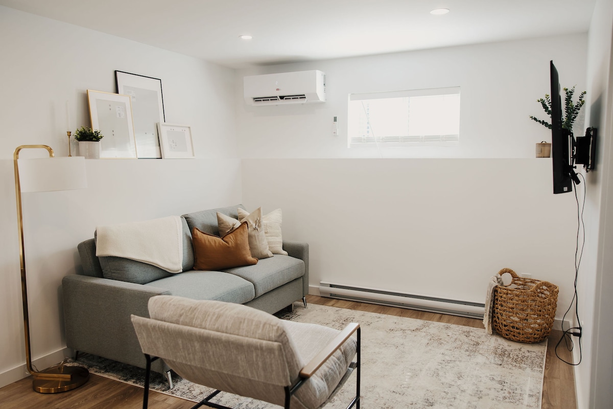Welcome to our brand new apartment, located in the basement of our house in one of Moncton's most popular neighborhoods. Discover a private and exclusive one-bedroom space, with a separate entrance, modern and elegant kitchen, cozy living room with sofa bed, luxurious bedroom and private bathroom. You will also enjoy the convenience of an in-home laundry room with washer and dryer.