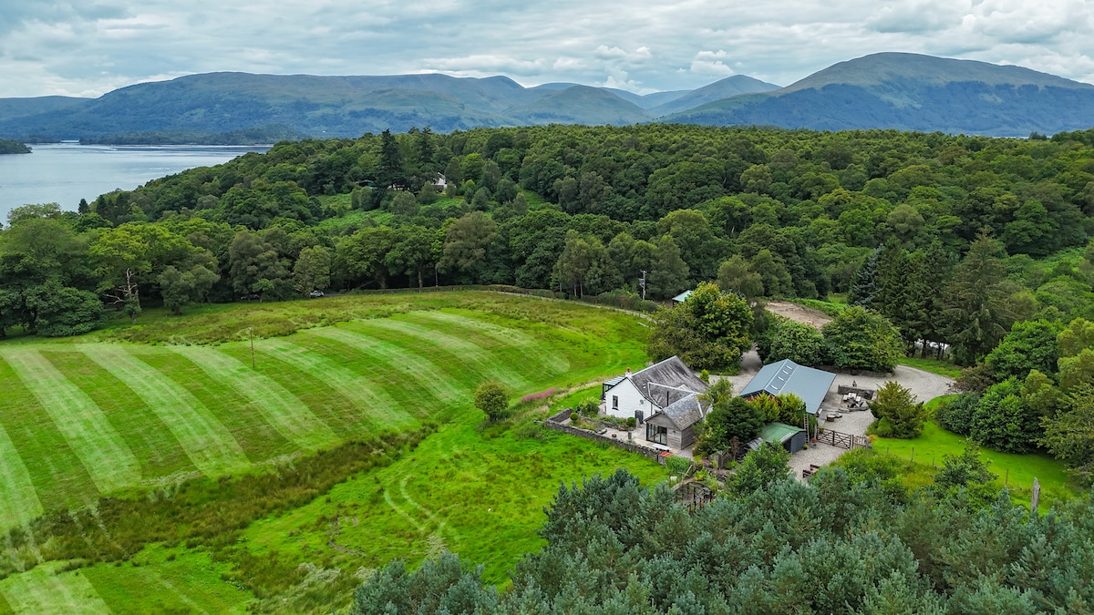 The Bothy, a stunning dog friendly cabin, nestled in the Menteith Hills on an 84 acre farm, offers a magical experience where you can reconnect with nature. No neighbours and uninterrupted 360 degree dramatic views to soak up all day from your south facing deck or wood fired hot tub. Light floods in though the BiFold doors. Luxurious mezzanine bedroom. Lush crips white linens, high quality decor and Scottish accessories make you feel utterly cosy. It's rustic meets luxury. It's a way of life !