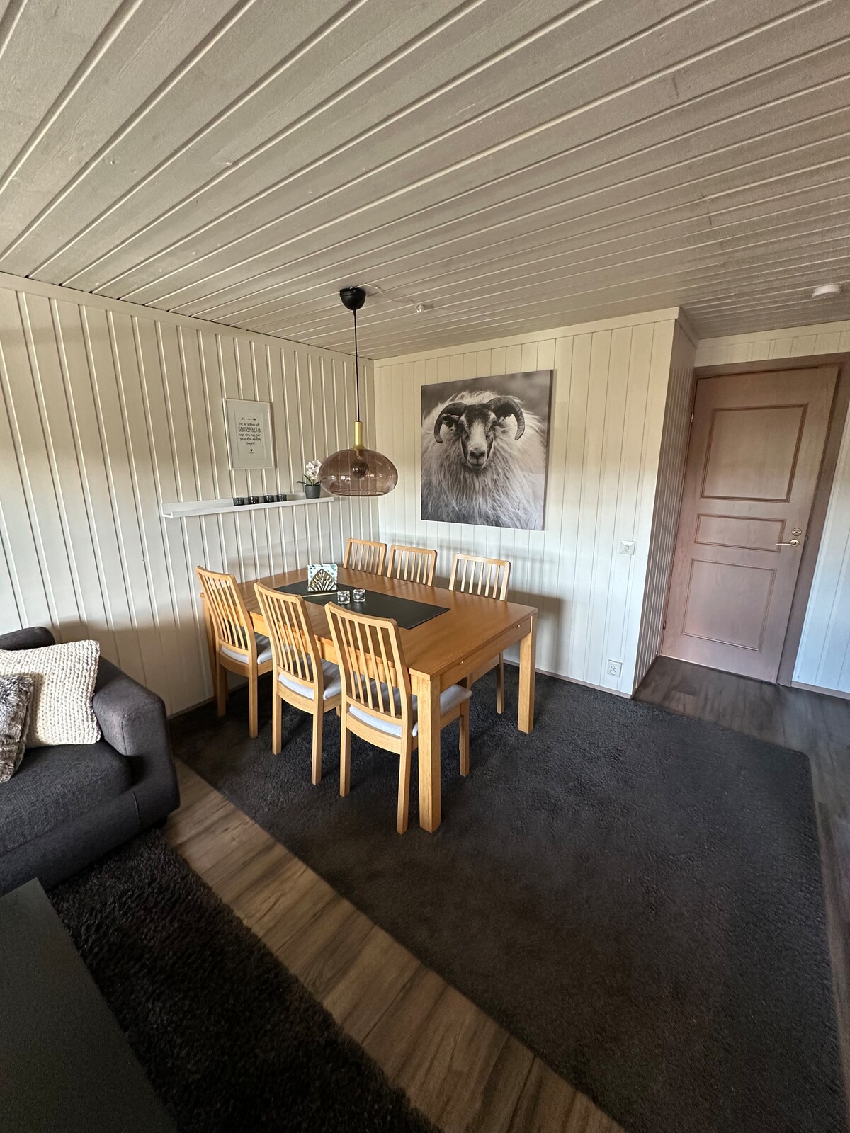 In the middle of the Jämtland mountain world is this newly renovated gem! Here you have the downstairs in a separate house in the middle of our old farm (the upper floor is not used). It offers mountain views, a fireplace and a large, lovely dining area. It is easy to get here, and skiing, forest walks or snowmobile rides start right outside the door.