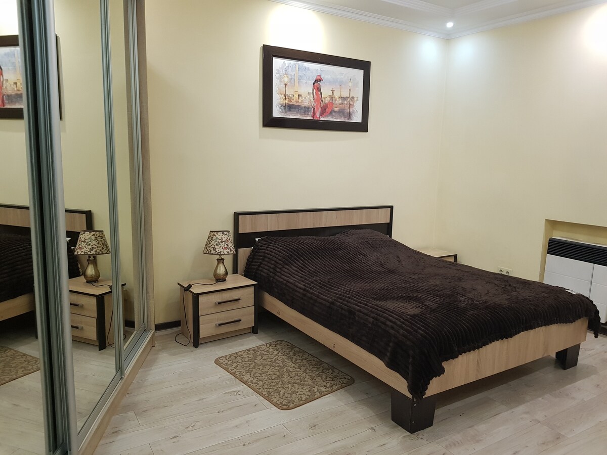 Апартаменти в самому центрі міста Чернівці. Завжди є гаряча вода та інтернет. В апартаментах є все необхідне для комфортного відпочинку, індивідуальне опалення з теплими підлогами у ванній та кухні, спальна кімната 20 м. кв. кухня з усім необхіднім, ванна кімната. В шаговій доступності Театральна площа, в 5 хвилинах ходьби до ЧНУ та вулиці О.Кобилянської. В апартаментах є посуд, електрична поверхня, електро чайник, пральна машина з функцією сушки, холодильник, фен, праска.