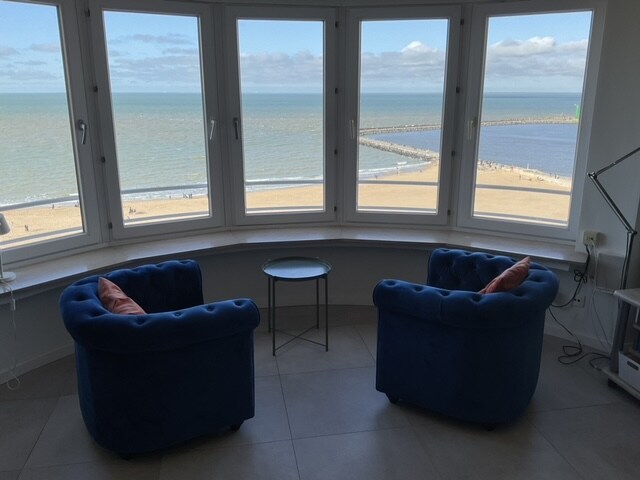 This is my brand new apartment in Oostende, lies at the seaside with full frontal seaview and direct access to the beach. We are situated on a high floor (under the penthouse) with soundproof windows.The studio is very luminous and bright, with all modern comfort. Oostende has a bustling nightlife, great restaurants, bars/clubs. My house is 100m from the casino, the harbor is around the corner and all the markets/supermarket are very nearby within walking distance. Central station 5 min walk.