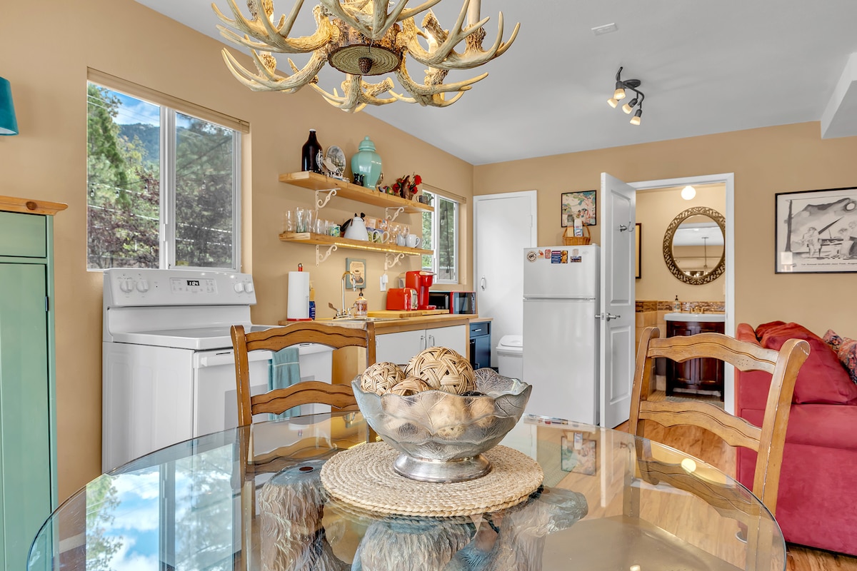 Stay Idy-wild at Shady Pines! Make yourself at home in this cozy one of a kind mid-century cabin with a touch of modern! Enjoy the views from every room, bringing nature indoors with all the comforts. You'll have a fully equipped kitchen with stone dishes, pots, pans, utensils and a stocked pantry with spices for a gourmet meal to be shared on the large front deck. The large fully fenced yard set with a nostalgic swing and corn hole game, perfect for kids, furry friends and for the young at heart . For adventurous spirits TAKE A HIKE, Hiking, camping, fishing, mountain biking, and rock climbing are popular activities. This small hidden mountain gem of a town is a whole EXPPERIENCE also known for its artsy culture , friendly community and eateries. COME STAY IDY-WILD at SHADY PINES!