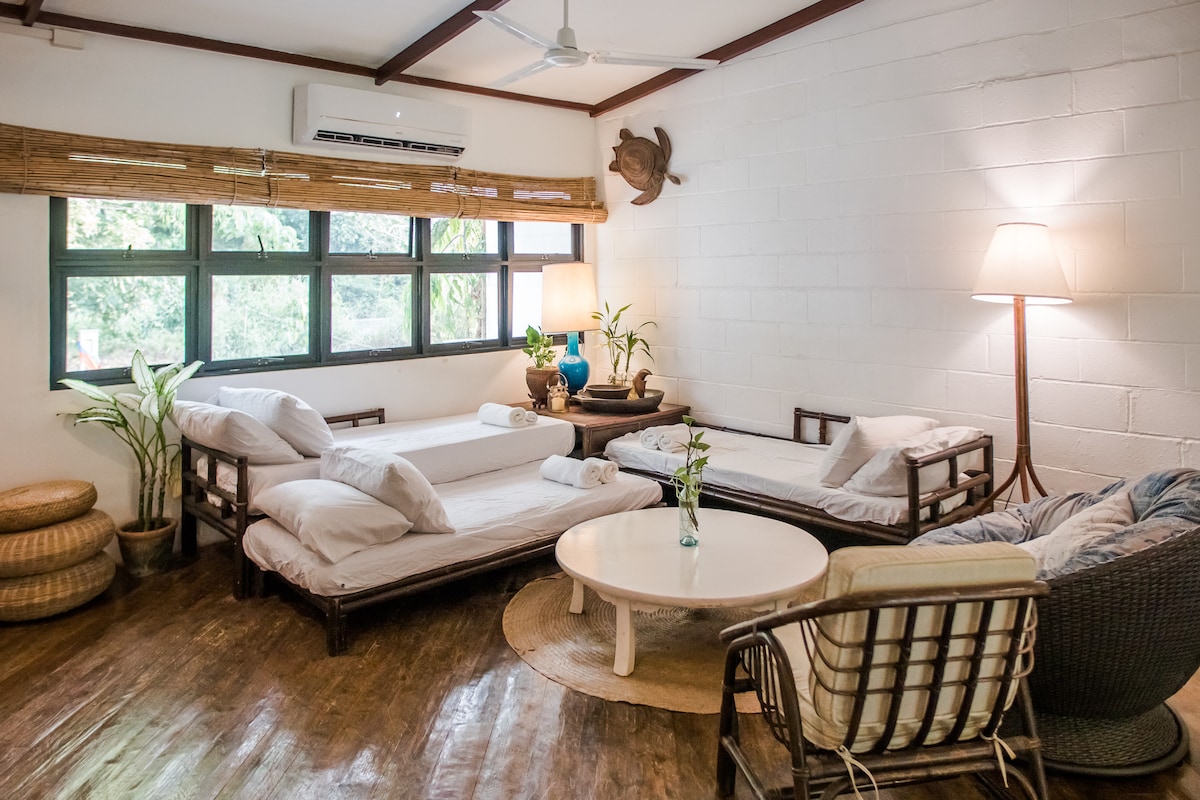 For today’s explorers and adventurers, Jiva Nest is your perfect 16 square meter hideaway on the 1st floor of an old US Navy house in Lower Cubi. 45 mins from Clark airport, 20 mins to the mall, 15 mins to the beaches and 10 mins to the waterfalls. NOTABLE FEATURES: >Ultra-comfy bed >Fast WiFi + StarLink >Hammock >BBQ grill >Kitchenette >Workspaces >Books & games >Bamboo bikes for rent >Green roof access >CCTV, 24hr security >Dedicated parking >AC >Pool Access* >Pet-friendly* *Fees apply