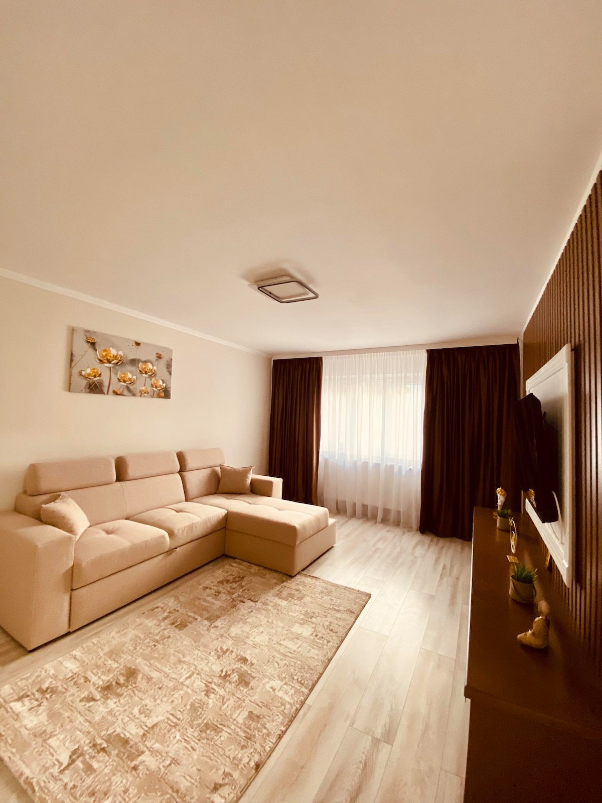 One bedroom apartment in Gura Humorului offers an elegant and functional environment. The spacious bedroom provides privacy, and the living room with separate kitchen adds practicality and modern design. The kitchen is fully equipped, facilitating the preparation of meals. The bathroom is carefully designed and equipped with all necessary utilities. Located in Gura Humorului, this apartment offers easy access to the city's facilities and the beauties of the surrounding area.
