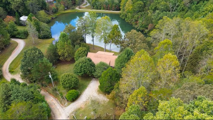 Dragonfly Treehouse: A Romantic Getaway in Dahlonega, GA Escape to the serene beauty of Dahlonega, GA, and experience the magic of The Dragonfly Treehouse—your perfect romantic retreat. Nestled among the trees, high above your own private pond. This luxurious hideaway offers everything you need for an unforgettable stay. Movie Theater, Hot Tub, Sauna, Nespresso, Soaking Tub, Luxury Shower, Heated Bathroom Floors, Towel Warmer, Put Green, Fire Pit, Outdoor Cabana Retreat w/TV and Floating Bed.