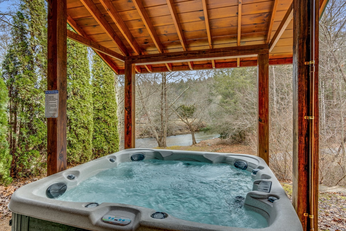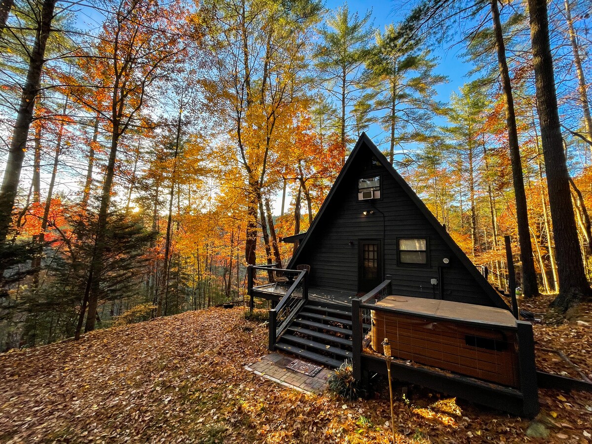 Relax in this peaceful and private modern space. A quick drive from the city and you've arrived at this escape from the hustle and bustle. Yet when the mood strikes for great restaurants, trendy bars/breweries, and unique small-town shopping you're only minutes away from downtown Blue Ridge. In this completely updated cabin you'll experience total privacy in the indoor hot tub, gorgeous screened in porch with swing bed and tv, huge walk-in shower, serene firepit, new grill & firepit table.