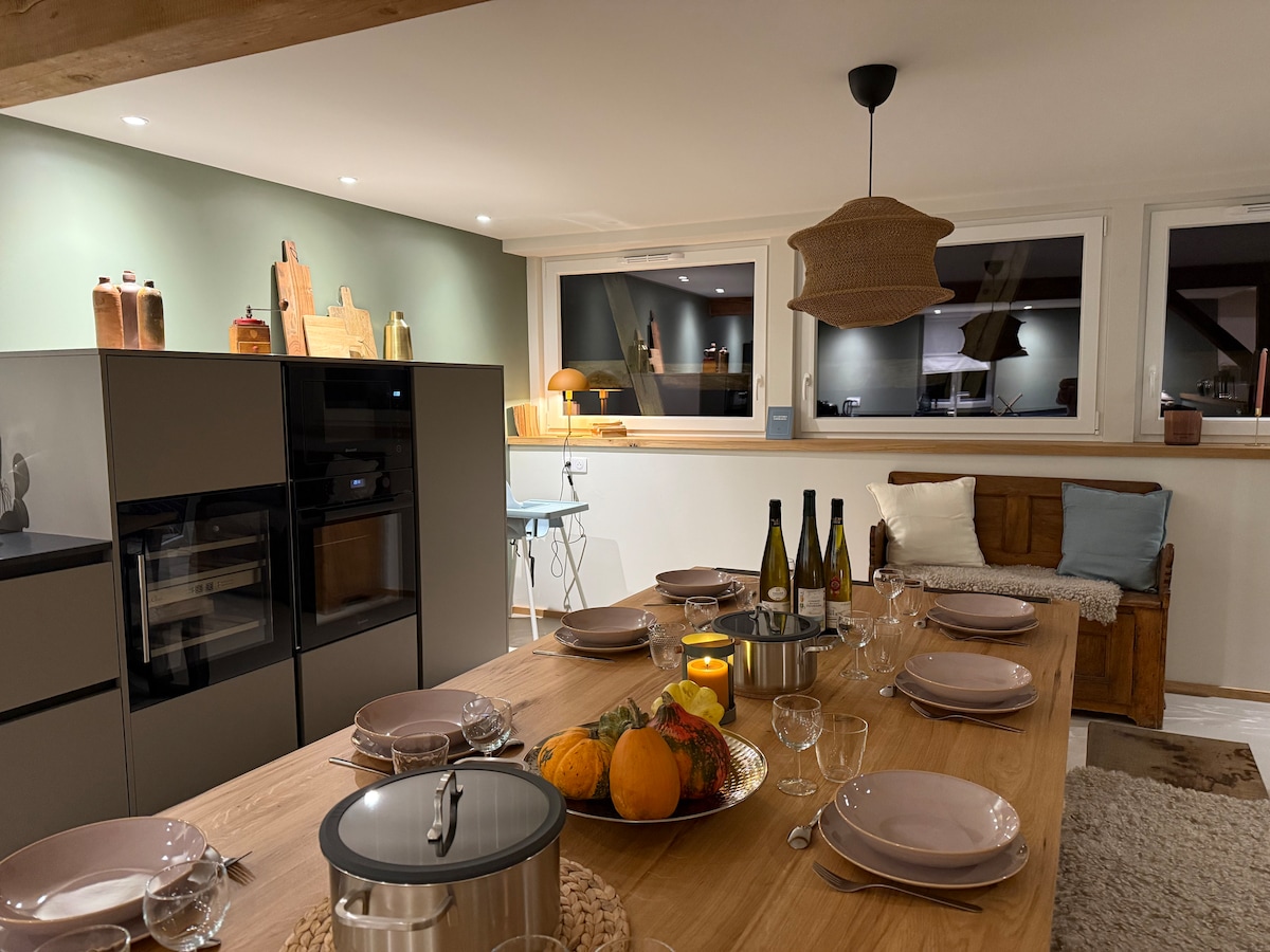 The EyerHof - owned by the Eyer family for three generations - is a farmhouse over 120 years old that was completely renovated from 2019 - 2022 and now combines the special charm of a farmhouse with modern industrial style. Next to the terrace, courtyard and garden there is a barbecue station with a large new Rösle gas grill & the barn which can be used as a cozy lounge. The interior of the house combines timber-framed construction with modern iron, wood, sandstone, clay walls and old with new 🖤