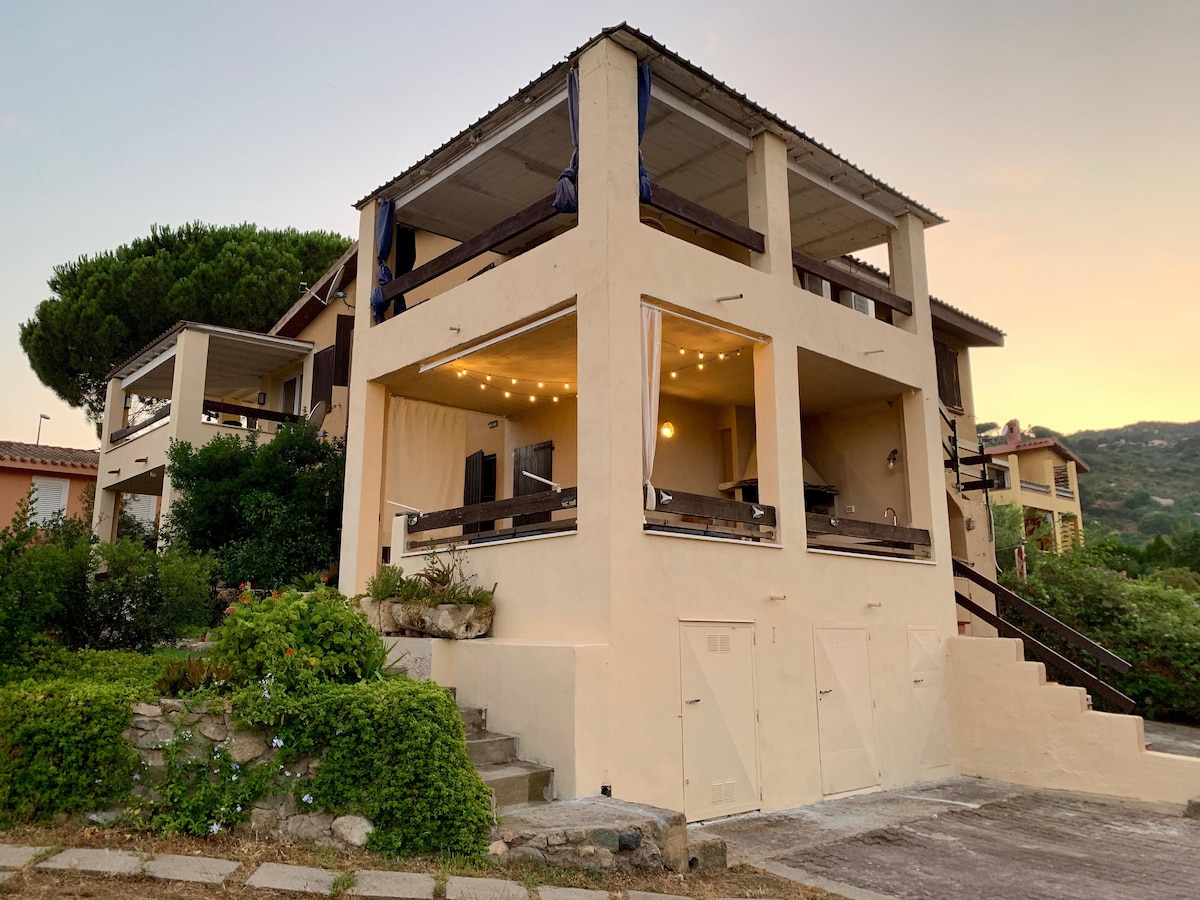 Enjoy a fantastic sea view in a comfortable space surrounded by Mediterranean vegetation and close to one of the most beautiful beaches in Sardinia. Ensure the functionality and privacy that a villa must have during your vacation. The house offers a central core with all the comforts and an annex equipped to accommodate another family for a total of 9 people. The villa is located 500 meters from the beach of Torre delle Stelle and can be reached on foot without a car in 10 minutes.