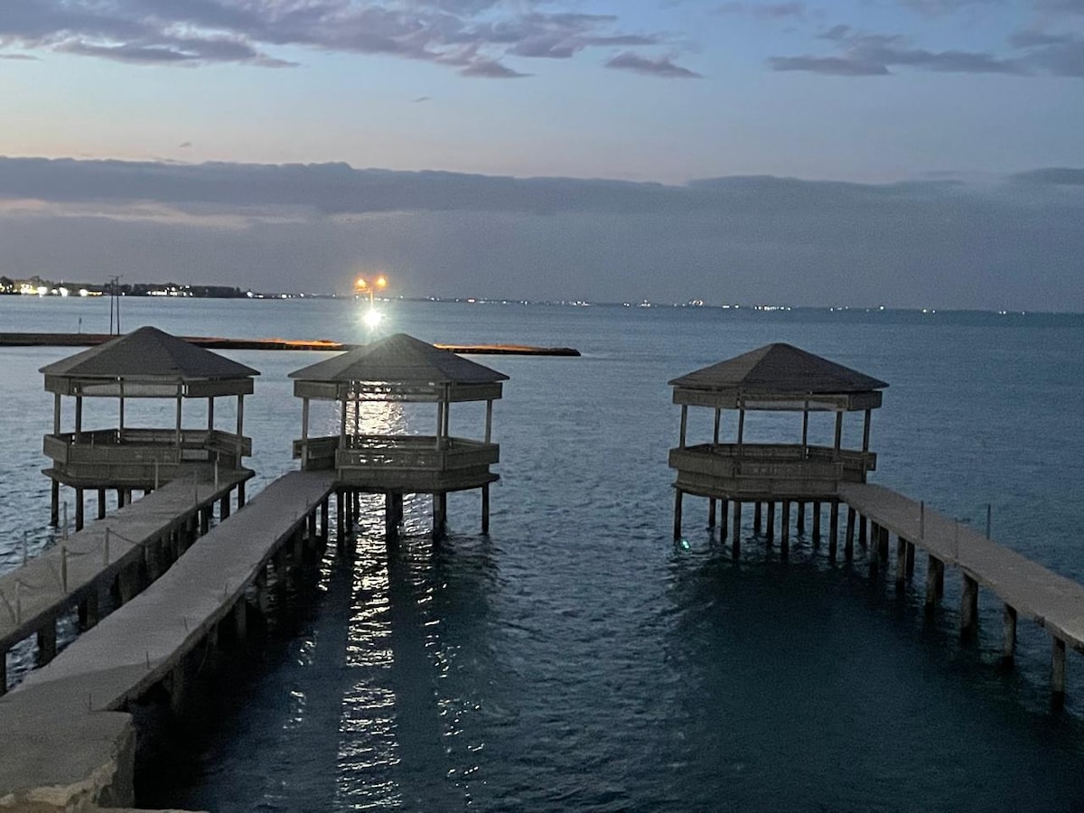 You won’t want to leave this charming, one-of-a-kind place. -The villa is a complex of elegant decorations, and natural marbles. -3 rooms with sea view. 1 room street view. -surrounded by Mango fruit trees and other trees. -a terrace overlooking the suez canal, with private beach -a large garden 200 sqm -Private Parking, can take 4 cars, with a small room for security.