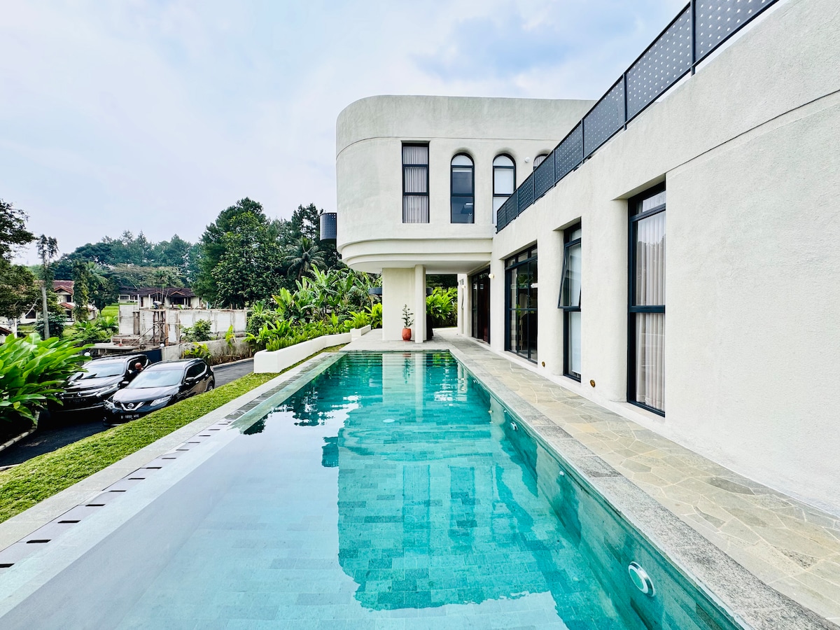 A Mediterranean-inspired unique retreat in the heart of Puncak. With elegant arches, sunlit interiors, and breathtaking mountain views, the villa blends timeless style with modern comfort. Relax by the private pool and enjoy the serene beauty of nature in refined tranquility.