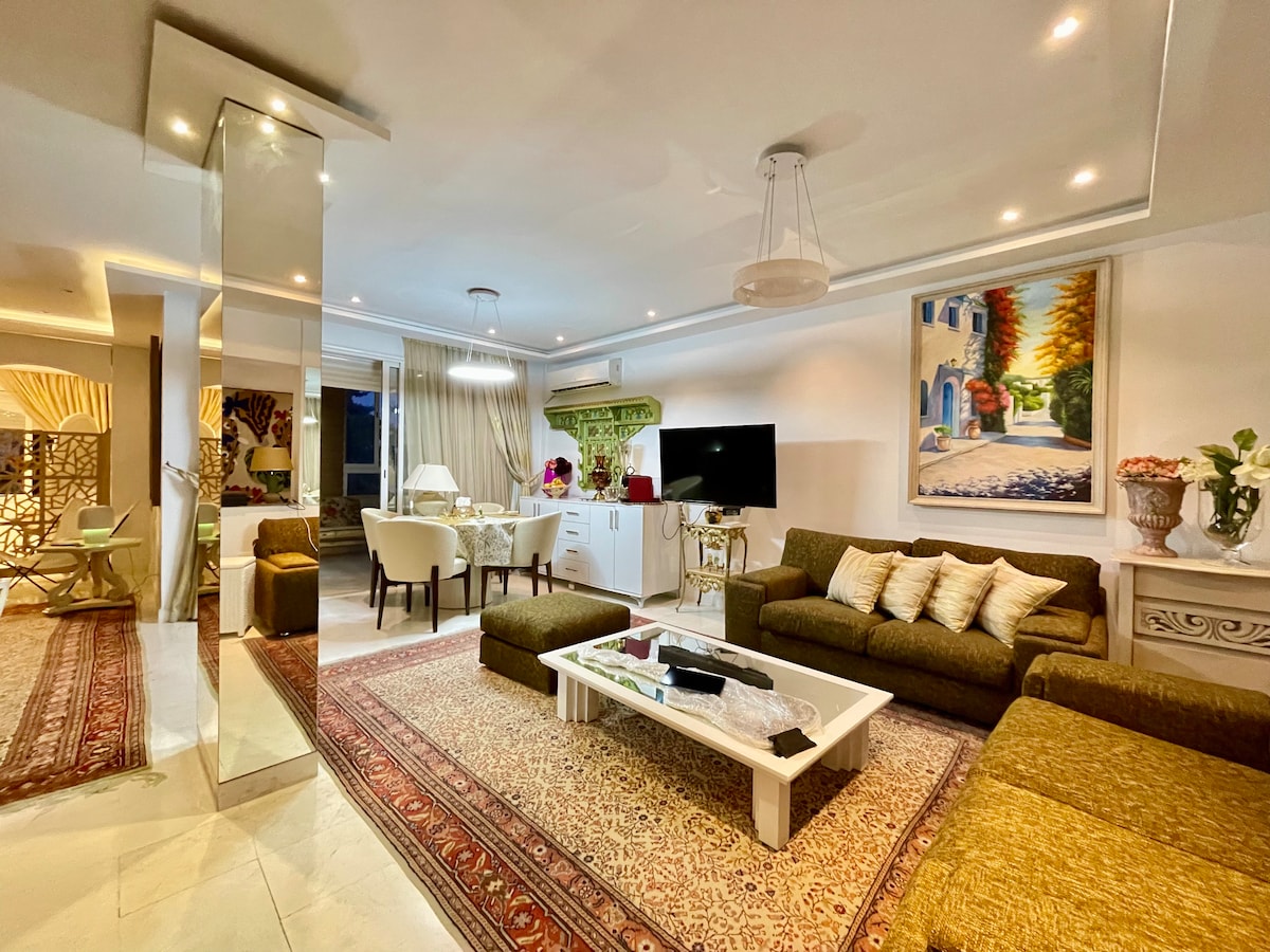 A very high-standard apartment with a magnificent view of Lake Tunis. Lively neighborhood with shops, restaurants and all the shops you might need. Close to the Concorde Hotel and the Paris Hotel. The apartment is composed of a living room, two bedrooms and an equipped kitchen. Very bright and sunny thanks to its large windows, including the living room overlooking a small balcony with a beautiful view where you can have breakfast facing the sunrise or sunset.