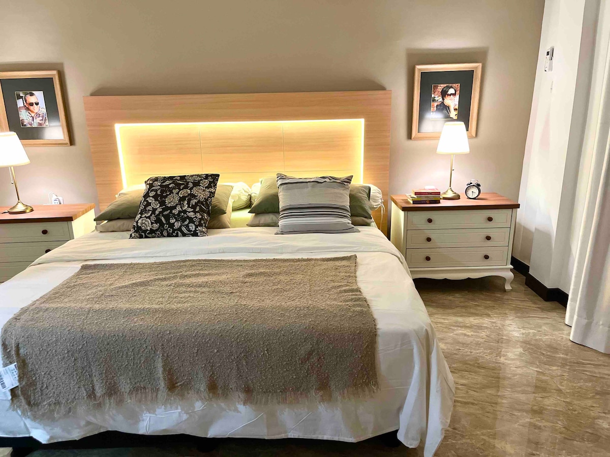 Cocok untuk keluarga kecil. Nyaman dan luas. Kamar mandi dengan water heater dan bathtub. Sejuk dengan atap yang tinggi. Aesthetic