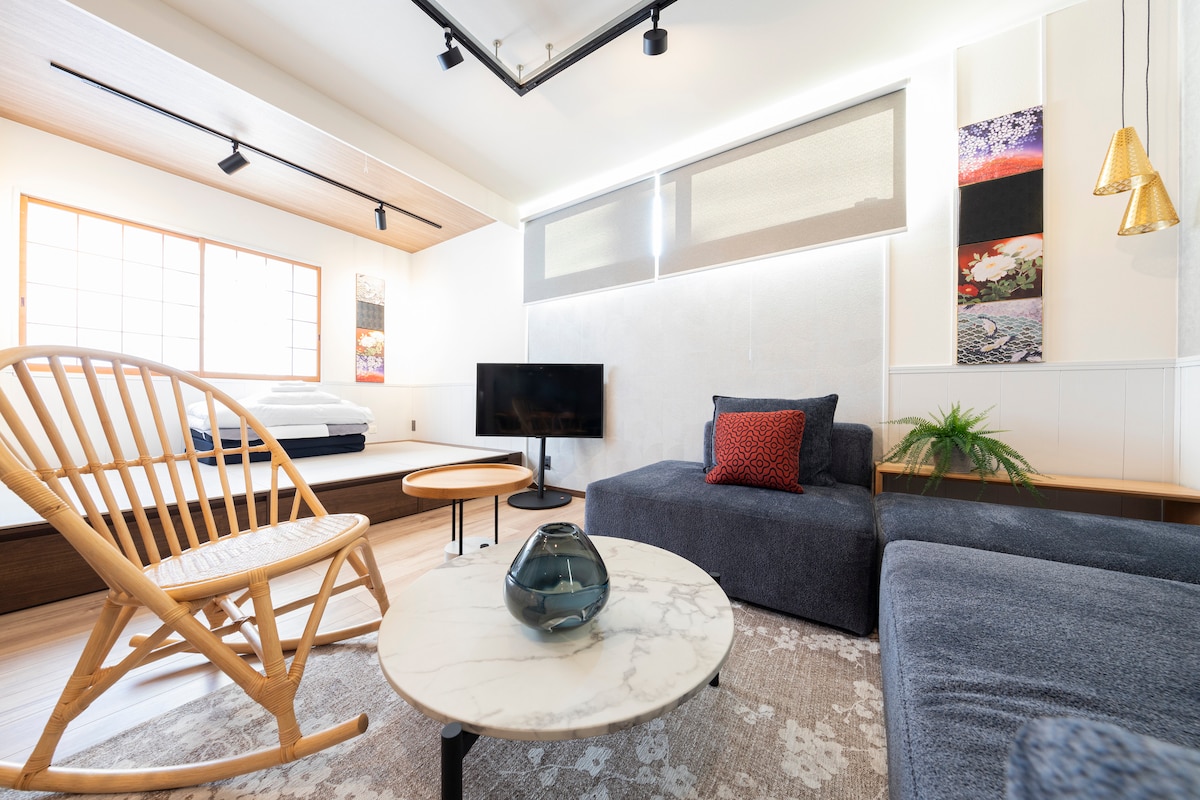 2340inn: Pools and commercial area, 4 minutes to subway, rooftop with view of Mount Fuji, beautiful design 55 square meters, Japanese tatami + living room, 2 bathrooms