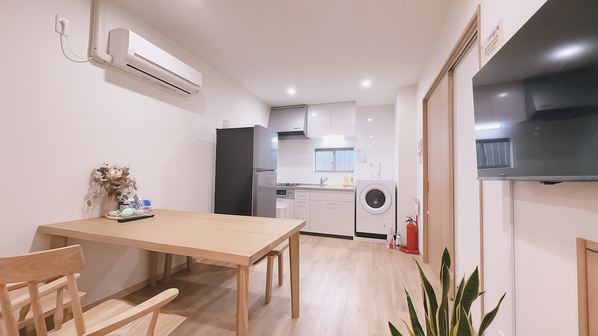 Newly opened on April 2024! Fully renovated Japanese and Western detached house.The area is 88 ㎡. Four bedrooms can accommodate up to 8 people.2 bathrooms, 2 toilets, dislocated, well-stocked, convenient transportation, shopping, and sightseeing trips! 🌟Well-equipped🌟 Fully equipped bathroom (bathtub and shower)➕ Private shower room Two washrooms, all bedding are 5-star hotel standards. Very convenient for🌟 access🌟 One train from🌈 Kansai airport 5-minute walk to Hanazonocho🌈 Subway 8 minutes walk to Tengachaya on the🌈 Nankai Line 10 min train to Shinsaibashi in🌈 Osaka 🌈Tennoji 8min by train 🌈Nipponbashi, Kuromon Market 10 min by train 15 minutes by train to🌈 Umeda 🌈Kyoto, Nara, Kobe all within an hour 🌟The space🌟 Spacious and comfortable living and dining room with🌈 4LDK 2 🌈bathrooms, 2 toilets (1st floor, 2nd floor) 🌈Living room with sofa, kitchen (ground floor) 🌈Bedroom 1: Two single beds (moveable, one large bed transformed) 2nd floor 🌈Bedroom 2: Japanese-style room, Japanese-style tatami (2nd floor) 🌈Bedroom 3: 1 double bed (2nd floor) 🌈Bedroom 4: Japanese-style room, Japanese tatami (3rd floor) You can dry your clothes on the balcony on the🌈 3rd floor.Covered, no worries on rainy days.