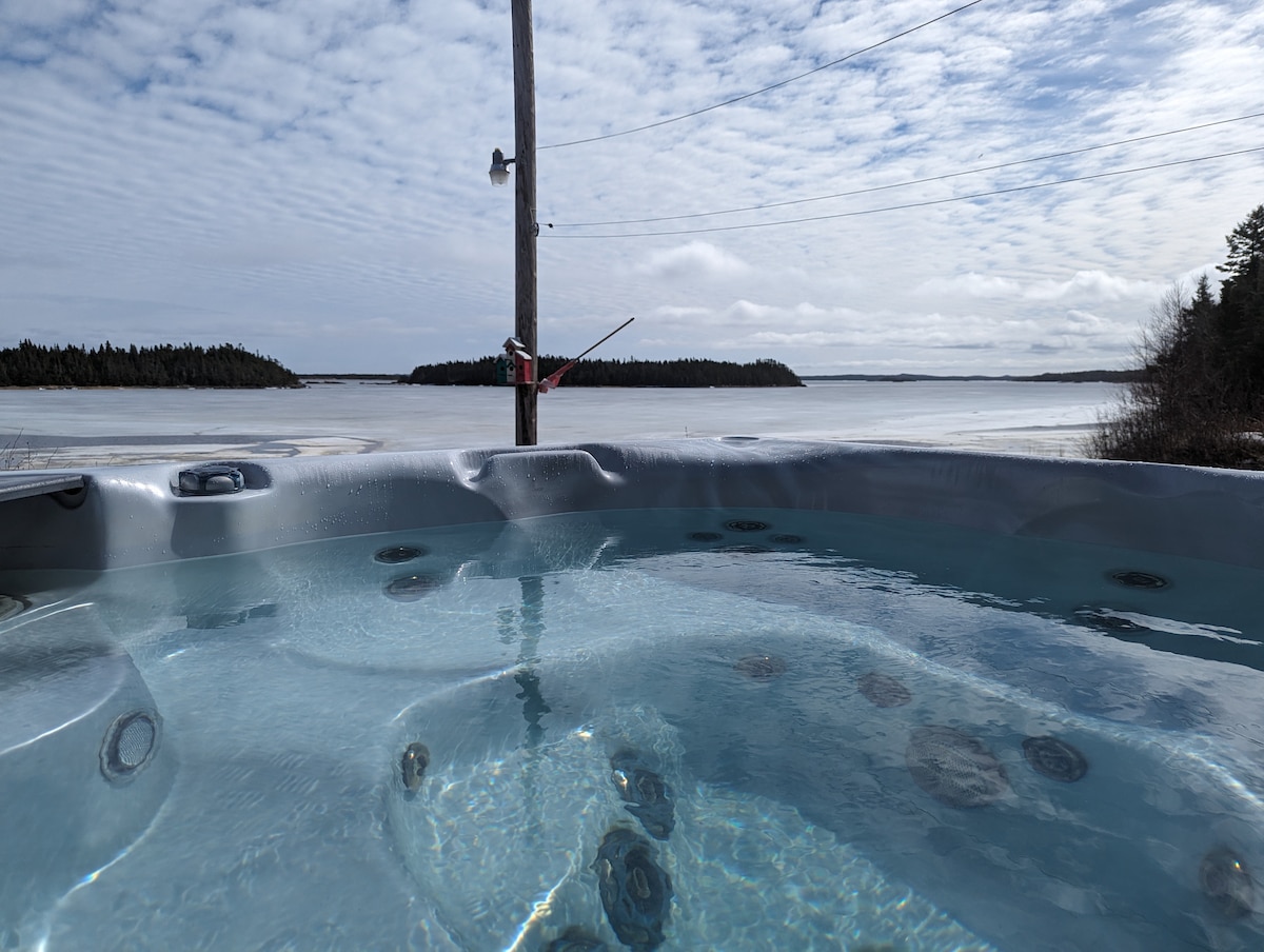 If you desire a tranquil, peaceful getaway then escape to our charming, cozy cottage in a tranquil setting. We are 25 mins from Twillingate (Rockcut hiking trails & icebergs in season. Relax in our Hot Tub on a fully enclosed deck while listening to some tunes or watching a movie on the outdoor Smart TV. Enjoy the cottage side fire pit or take in a breathtaking sunset, just steps away from the cottage with our Fire pit & seating right at the waters edge.