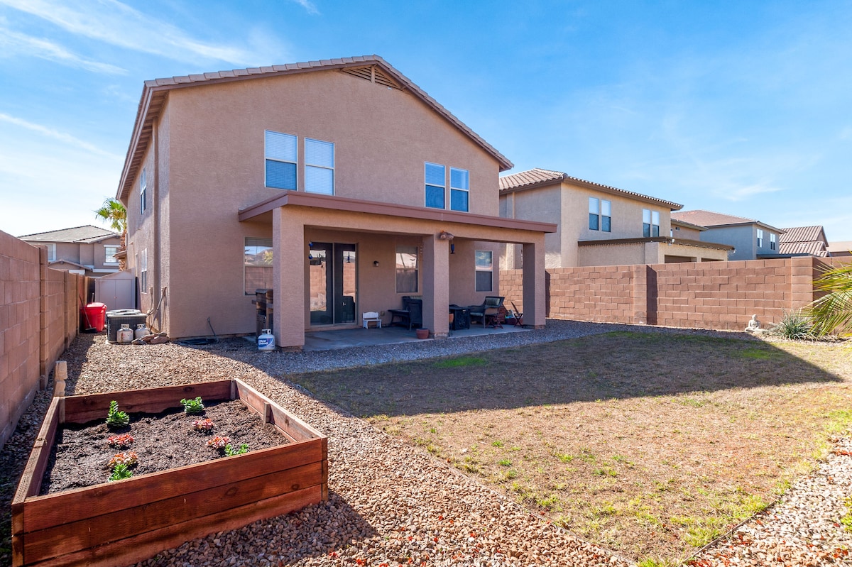 Come experience what the beautiful state of Arizona has to offer . Year round sunny weather, beautiful sunsets and Mountain Views. Stay at this spacious 4 bedroom 2.5 bath vacation home in the beautiful northwest valley. This home offers a fully equipped kitchen for preparing meals, a private backyard and grill, and large bedrooms for relaxation. It’s a prime location with a short drive to sports venues, outdoor adventure, a lake, playgrounds, restaurants, bars and shopping.