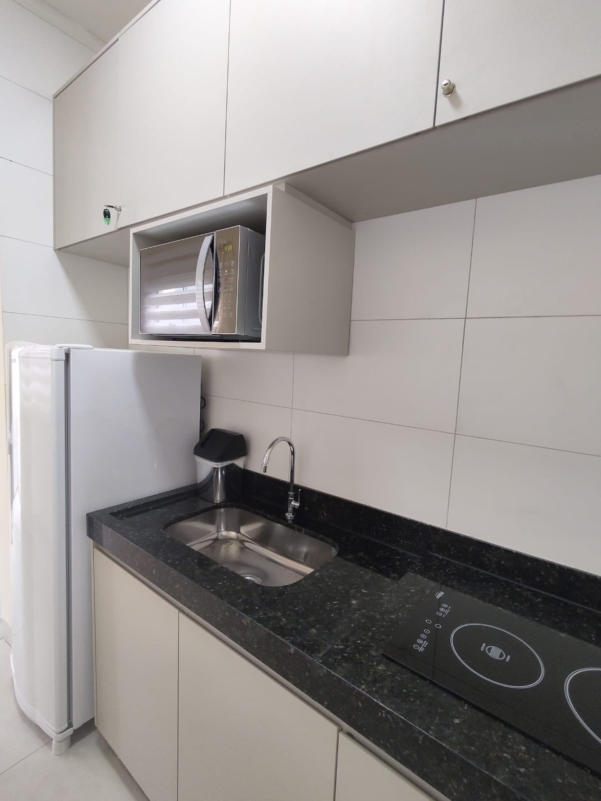 Cozy and functional accommodation, ideal for singles or couples. Airy living room with four-seater sofa, kitchen equipped with utensils, minibar and microwave, iron and coffee maker. Comfortable bedroom, bathroom with a good shower. Clean, bright and well-ventilated environment. Excellent location, one block from Capim Dourado Shopping. Comfort and practicality for your stay. Book now!