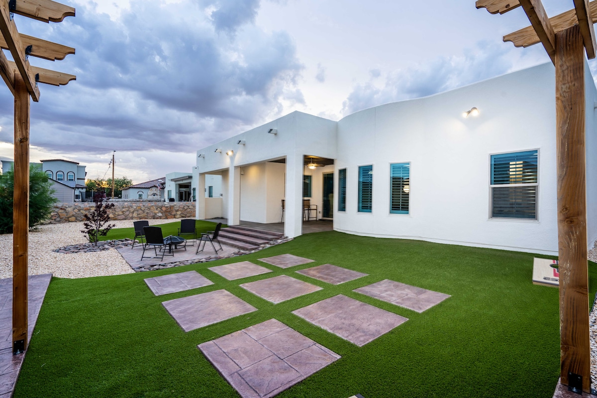 Welcome to our home-perfect for families, couples & dogs. Enjoy this spacious 3‑bedroom, 2‑bath retreat in a gated community w/security & many amenities. Our home is comfy & fun, w/high‑speed Wi‑Fi, a well‑equipped kitchen, grill, covered patio, & peaceful backyard. Walk/bike to the community pool/hot tub (seasonal), gym, playground, tennis/basketball/volleyball courts. GREAT location- near 375 Loop, Ft. Bliss, Airport, hospitals, restaurants, shopping & NPs. Everything you need is right here!