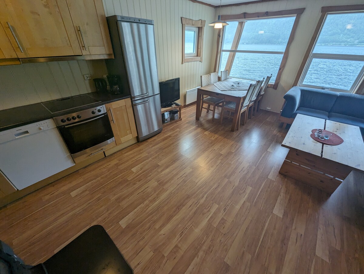 Discover the enchanting allure of Todalsøra. This idyllic retreat offers a harmonious blend of traditional Norwegian marine design and modern amenities, creating a sanctuary for those seeking tranquility or adventure amidst nature’s grandeur. Wake up to awe-inspiring views of towering mountains and serene fjords, and unwind in a space that caters to your every need, with a fully equipped kitchen, cozy living area, high-speed internet, and more.
