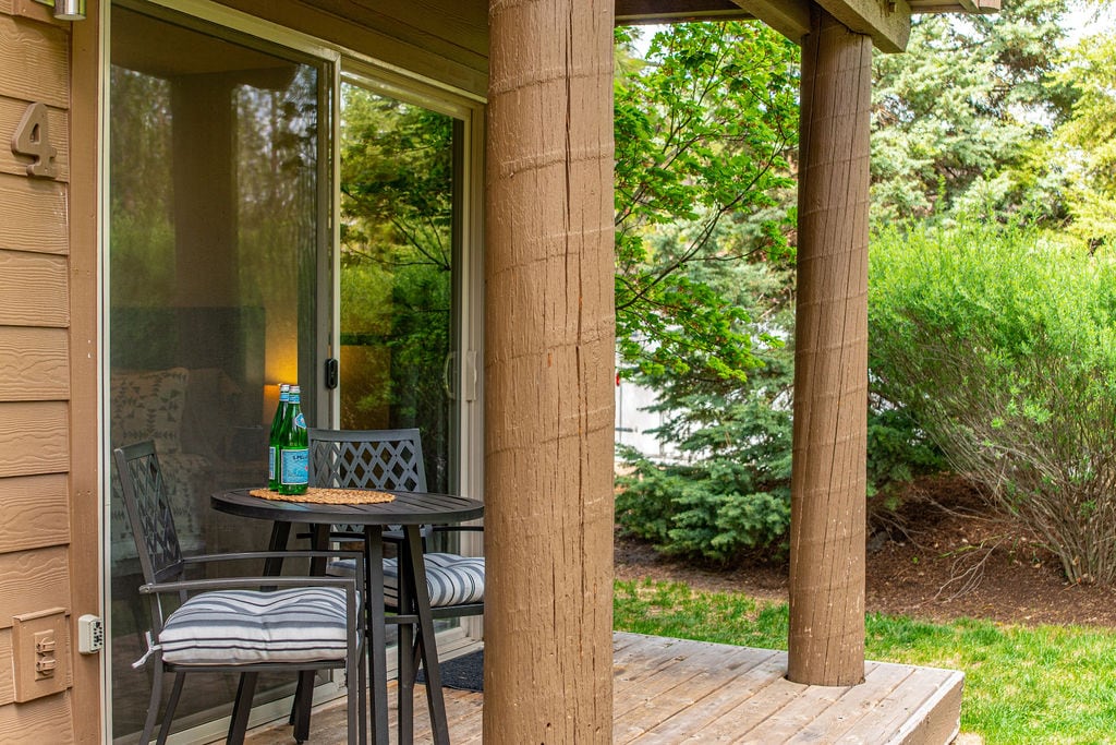 Enjoy Sunriver’s most popular amenities located a short walk to The Village and SHARC including a tubing hill, pool’s and hot tub. This recently renovated, rustic modern condo is in the heart of Sunriver Village. It’s truly a retreat being an end unit, offering great views and ample privacy. Leave everything at home, this condo comes equipped with all things needed to enjoy your stay! There are 2 sleds and bikes of various sizes to go cruise the miles of paved bike paths, right outside the door.