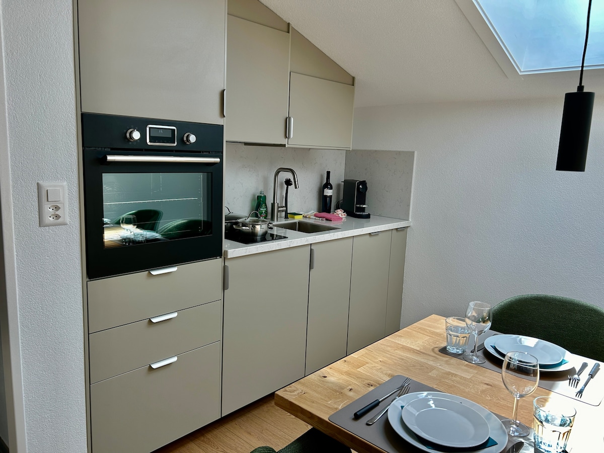 Relax in our beautiful hideaway. With a lot of work and passion, we have transformed our little gem into a paradise on our own. Whether as a couple for romantic hours, as a small family or as a group of friends; our apartment, on the village square of Eischoll offers a lot: It is centrally located with Volg next door, hiking trails, bike trails and ski slopes around the corner and pure tranquility in a minimalist ambience (+ small spa bath with bathtub and walk-in shower).