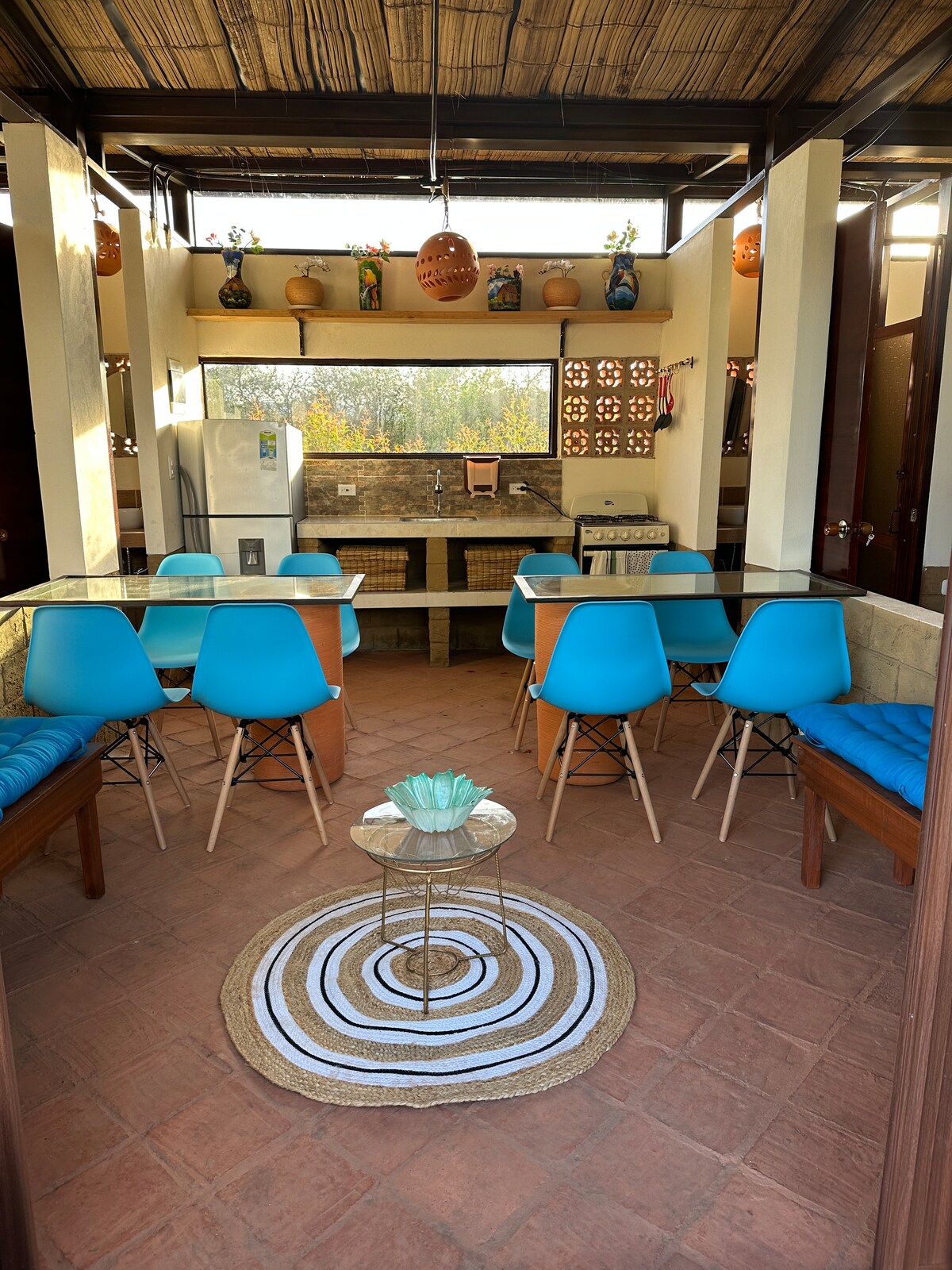 Villa los Alebrijes is a beautiful retreat surrounded by lush plants and majestic mountains, where tranquility is the protagonist. This place offers a comfortable and cozy atmosphere, ideal for families and groups of friends looking for an alternative close to Villa de Leyva and Raquirá. In this mini house you can enjoy the peace and serenity that nature provides, making your visit an unforgettable experience. We are very close to Villa de Leyva and Ráquira